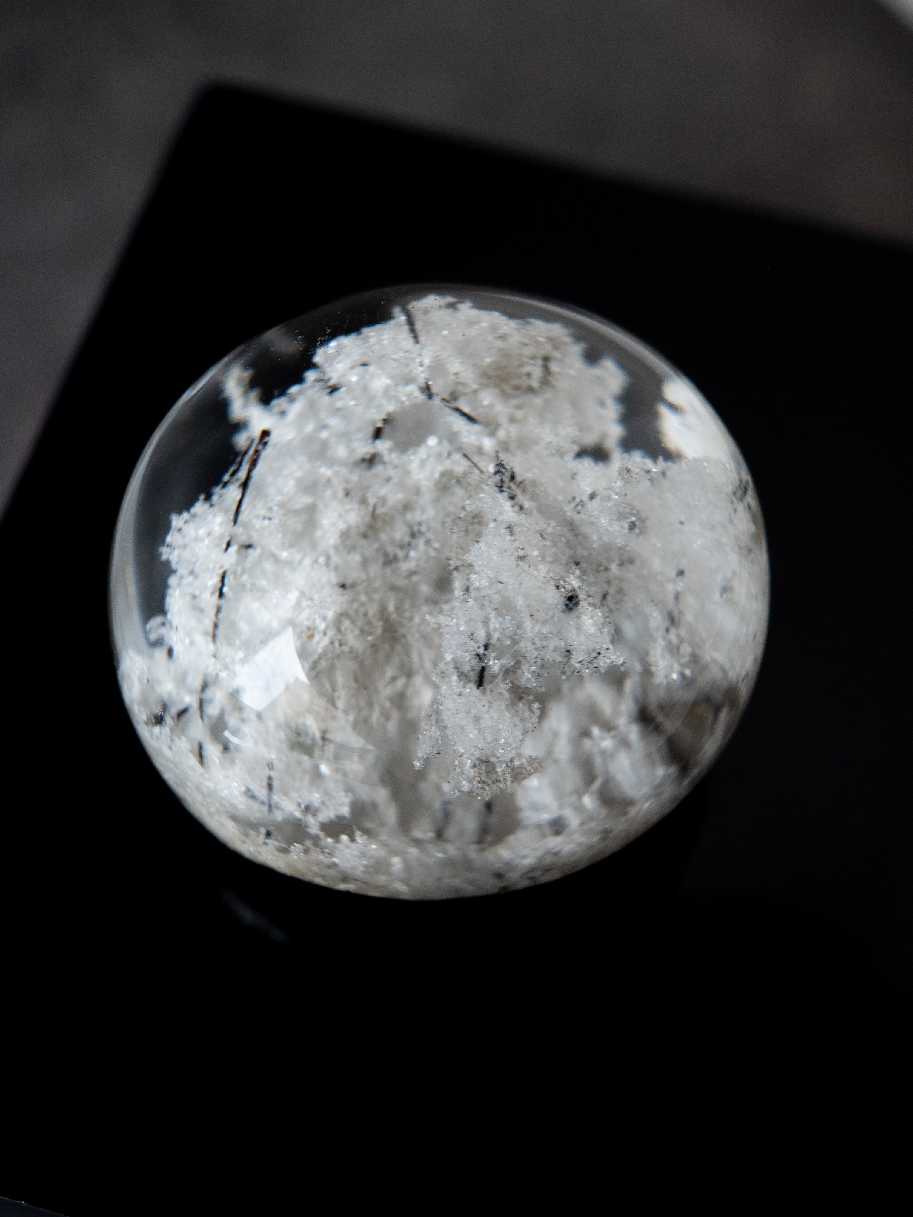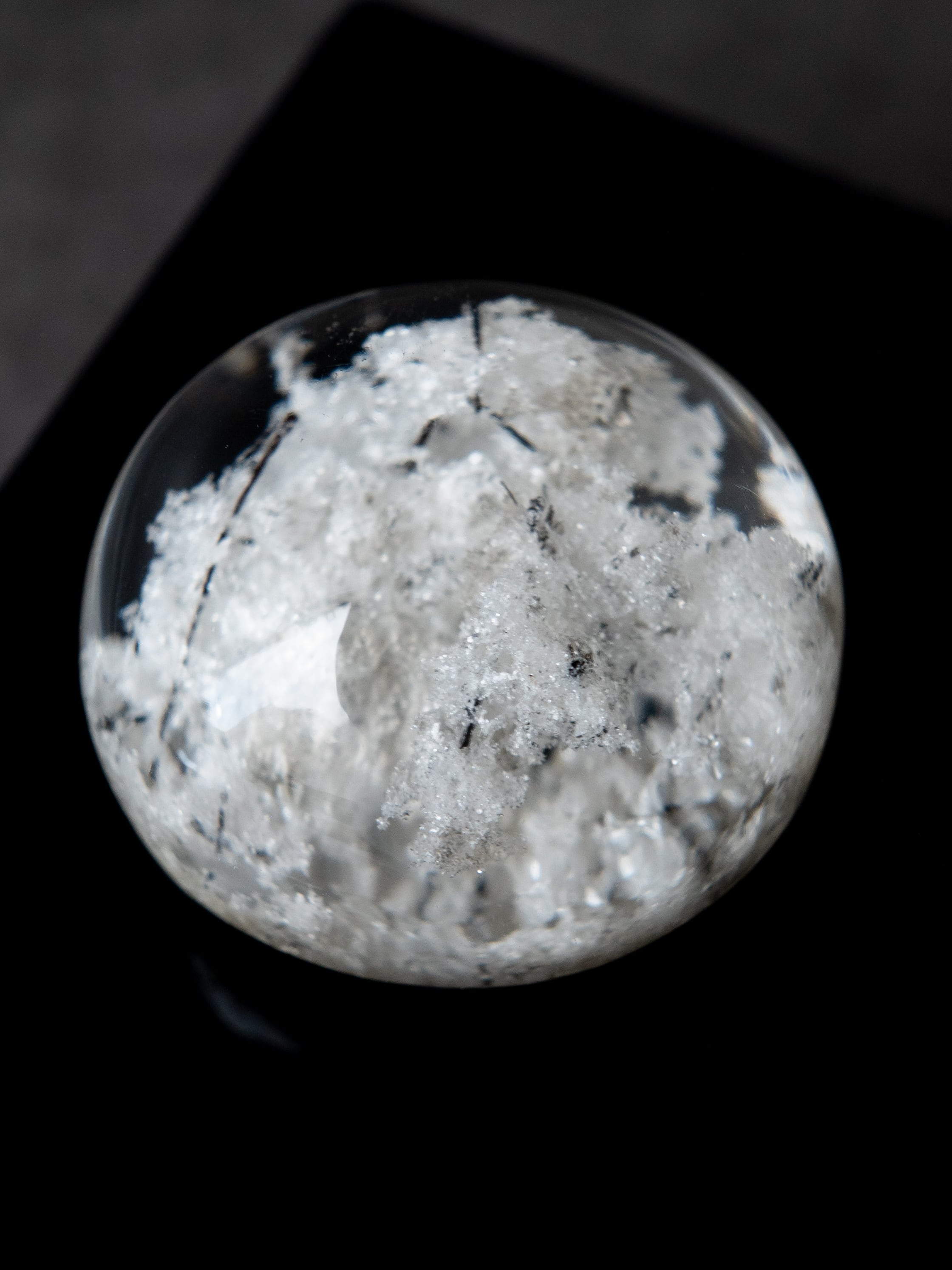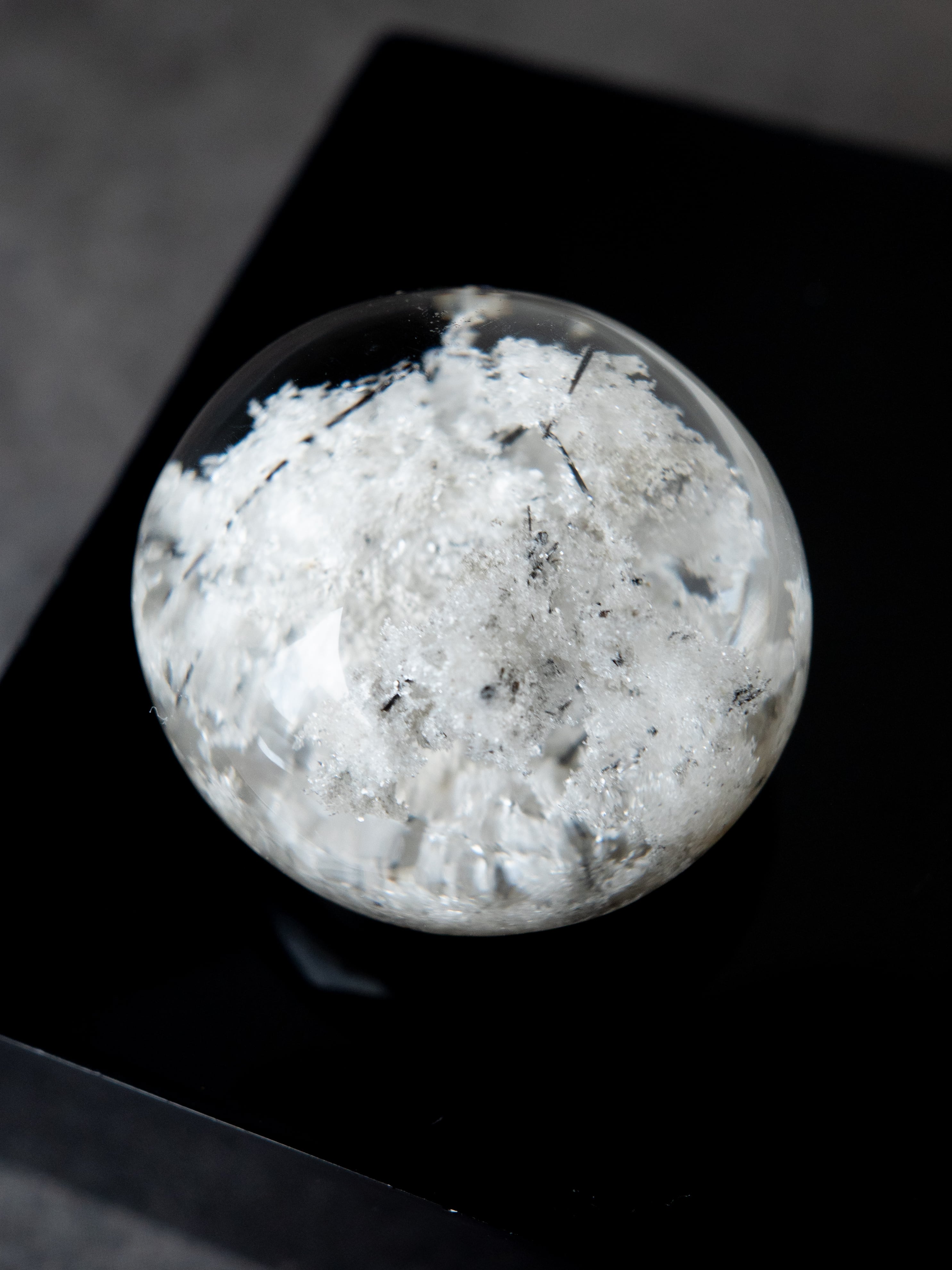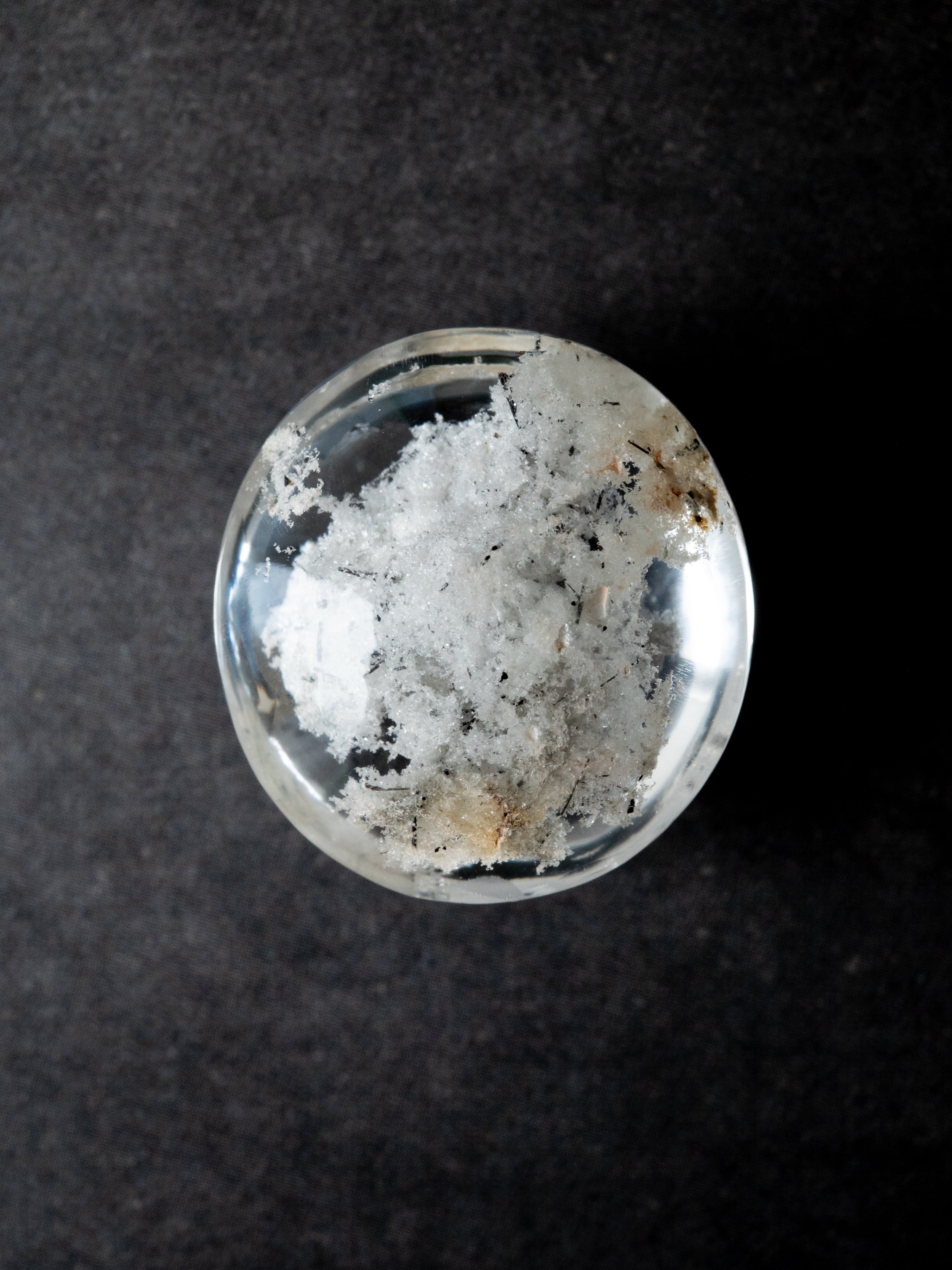 こちらはトルマリンを内包したタイプ。ブラックアンドホワイトのコンタラストがクールな印象のルースです。