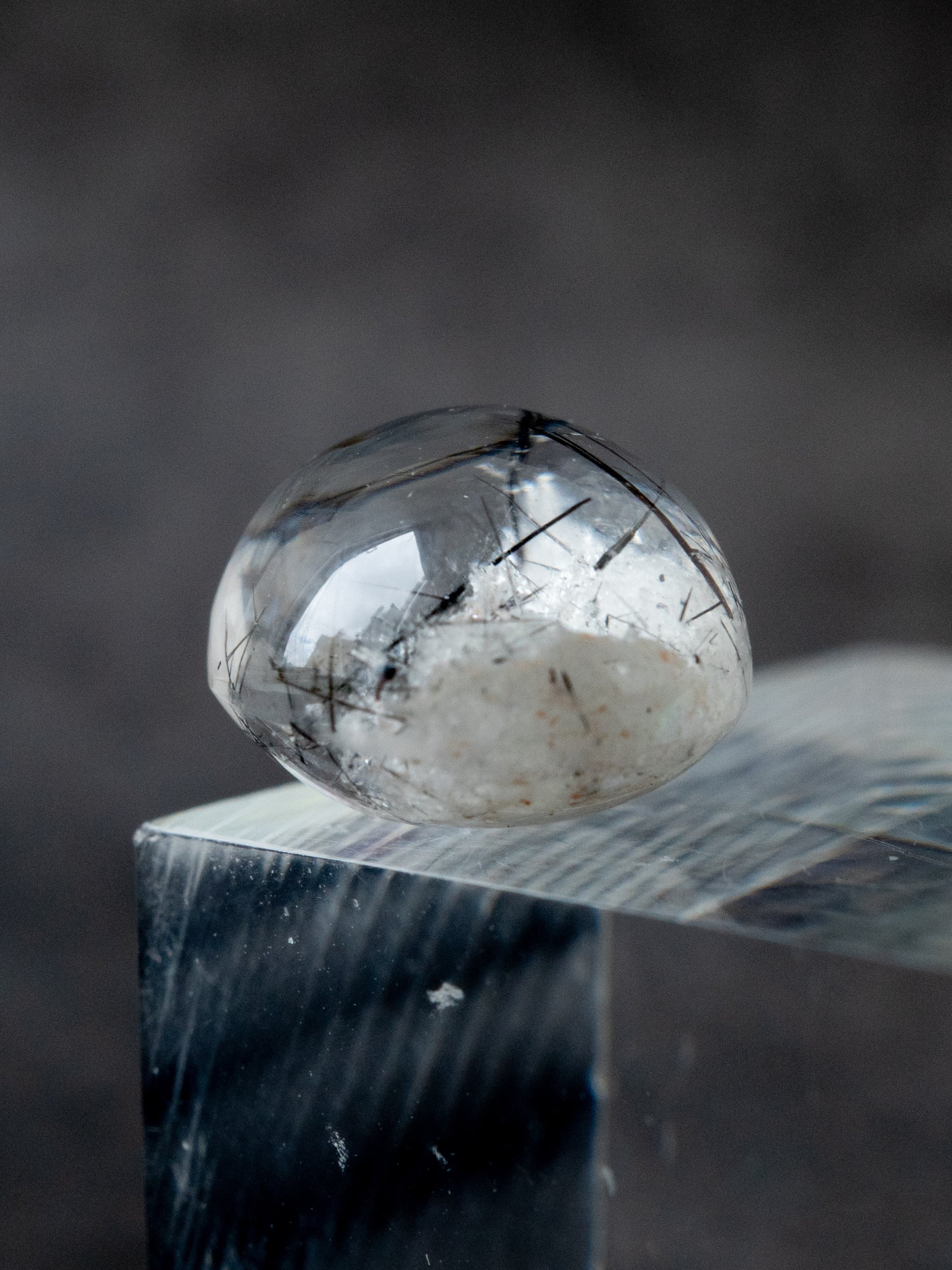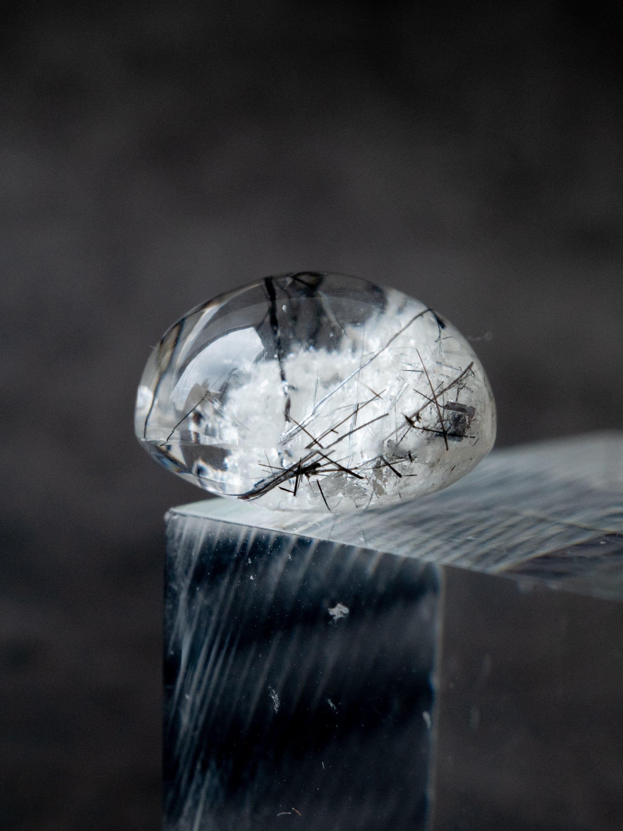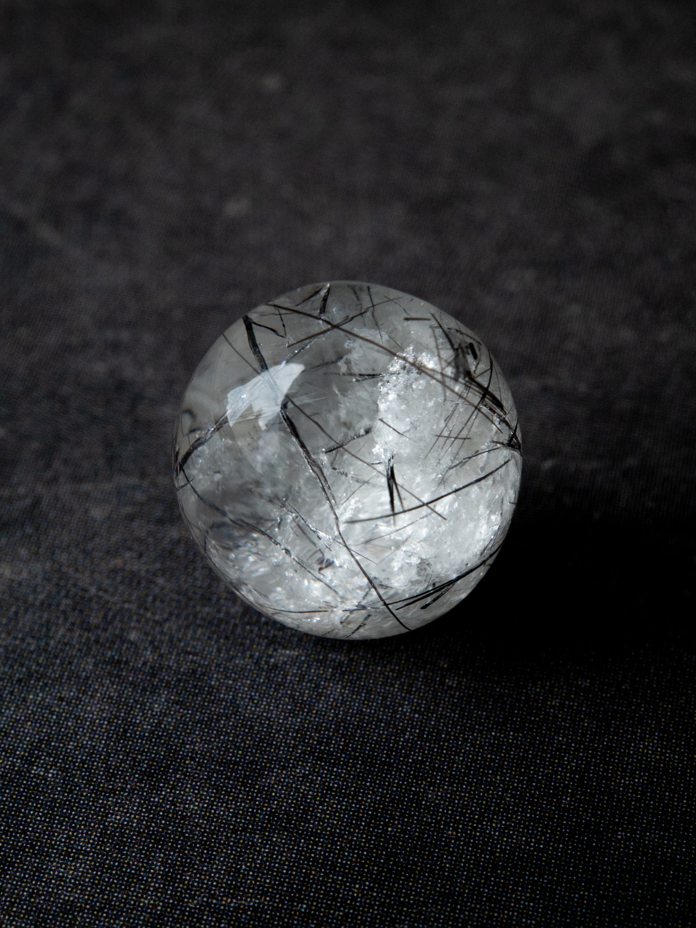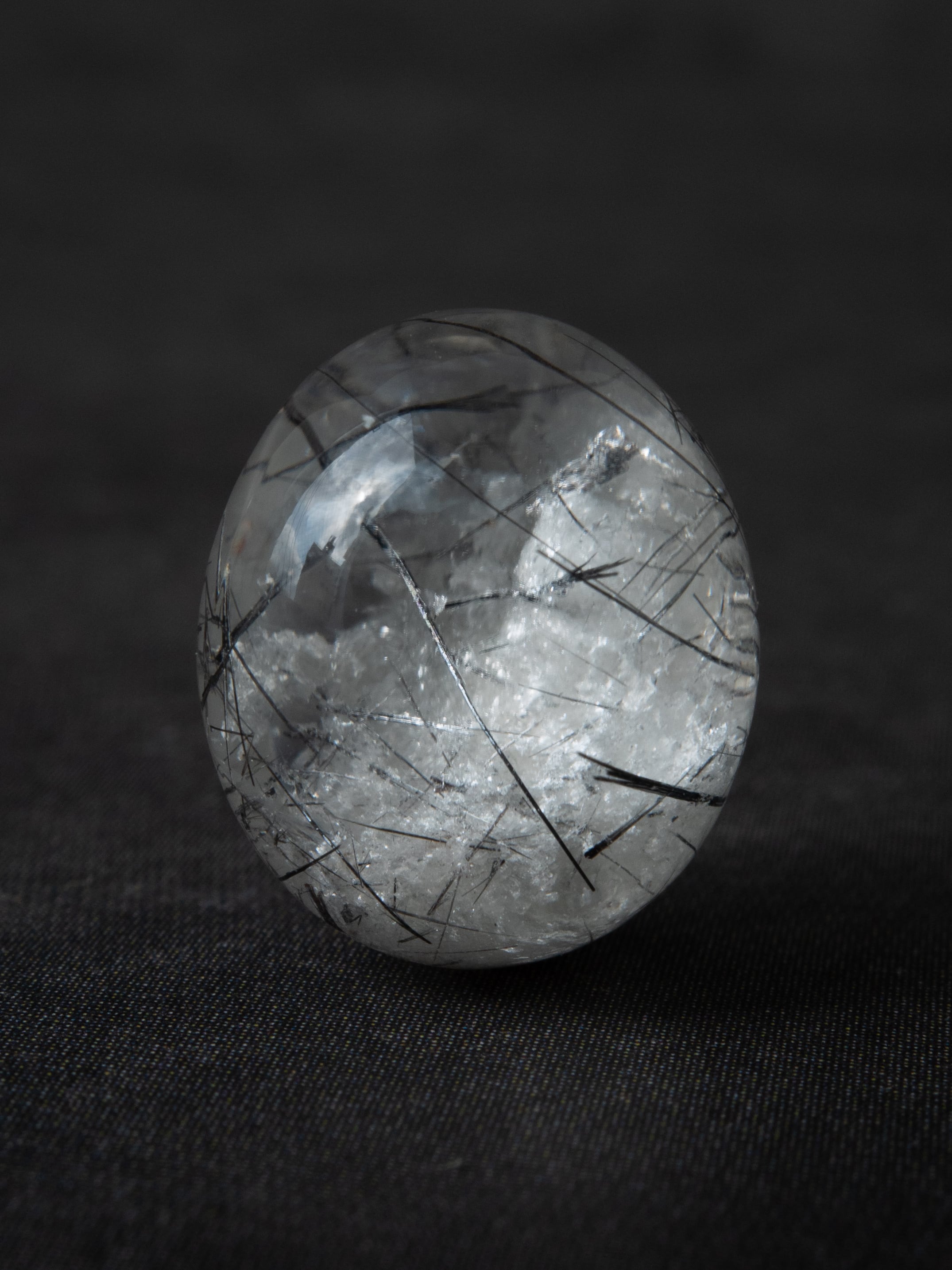 こちらはトルマリンを内包したタイプ。ブラックアンドホワイトのコンタラストがクールな印象のルースです。