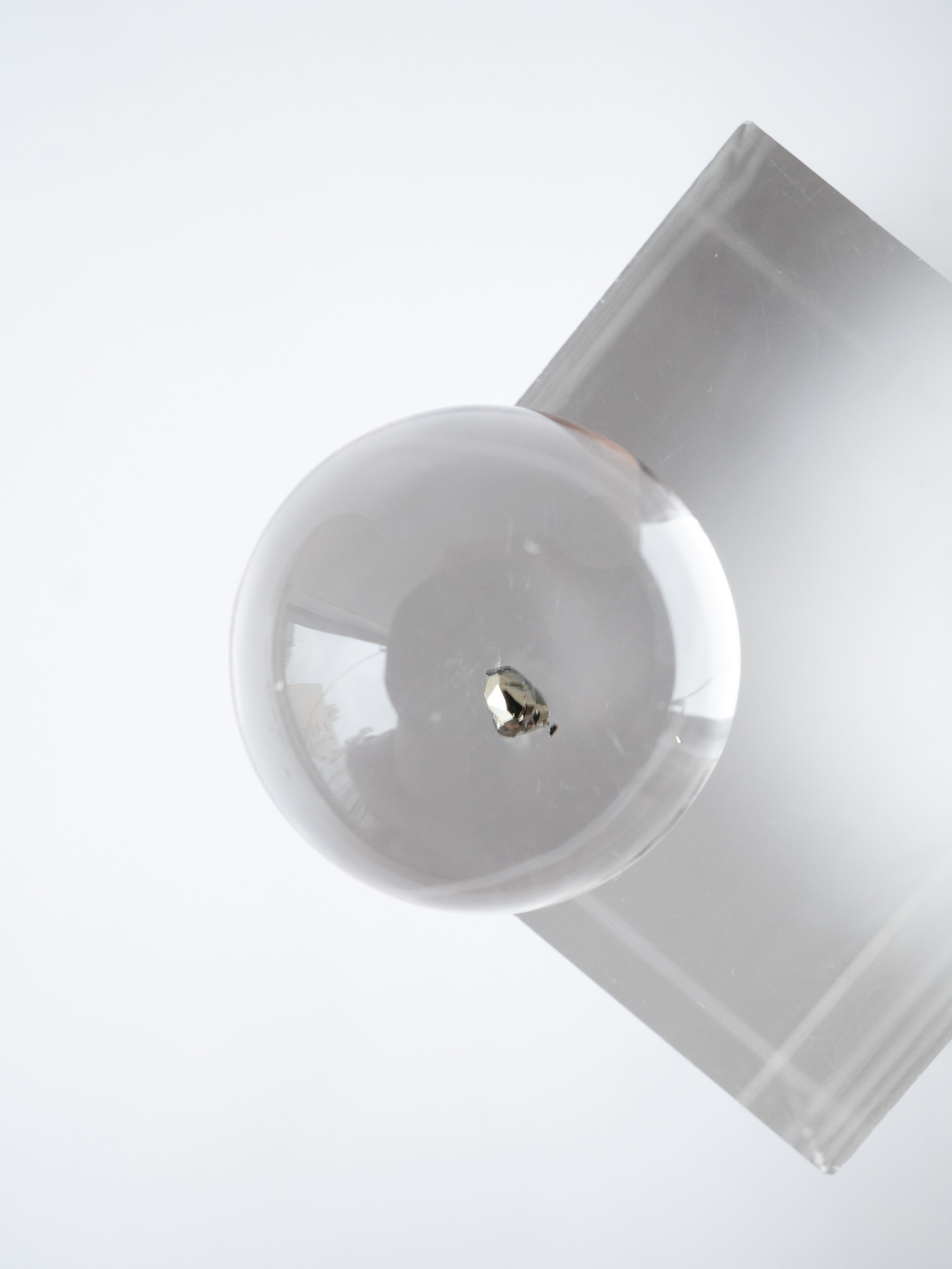 The word “py” comes from Greek and means “fire,” reflecting its historical use as a fire-starting stone. As pyrite is a sulfide mineral, it is prone to oxidation and can rust when kept in its raw form. However, when it is enclosed within quartz, the crystal remains beautifully preserved, allowing its brilliance to be enjoyed for years to come.