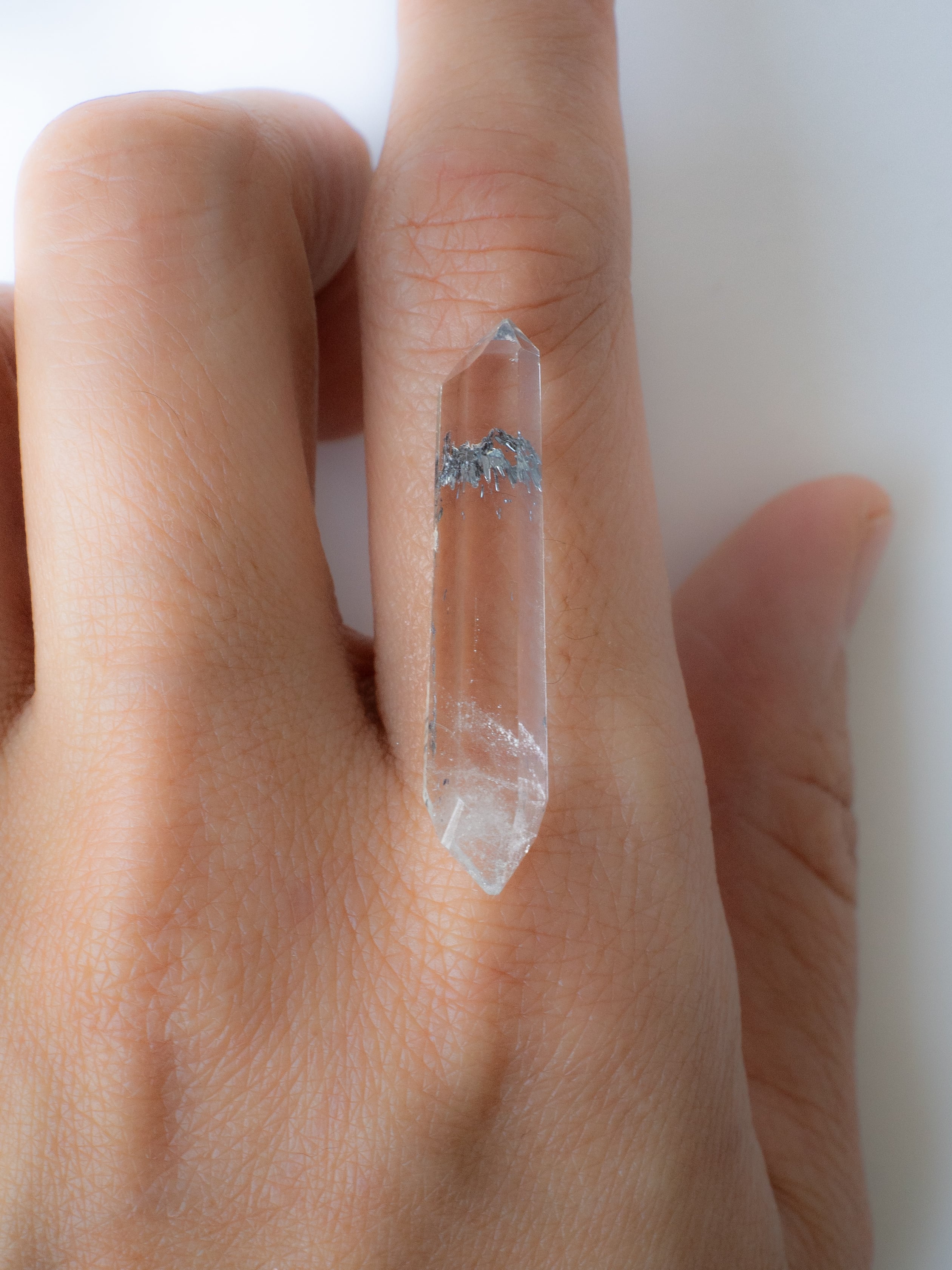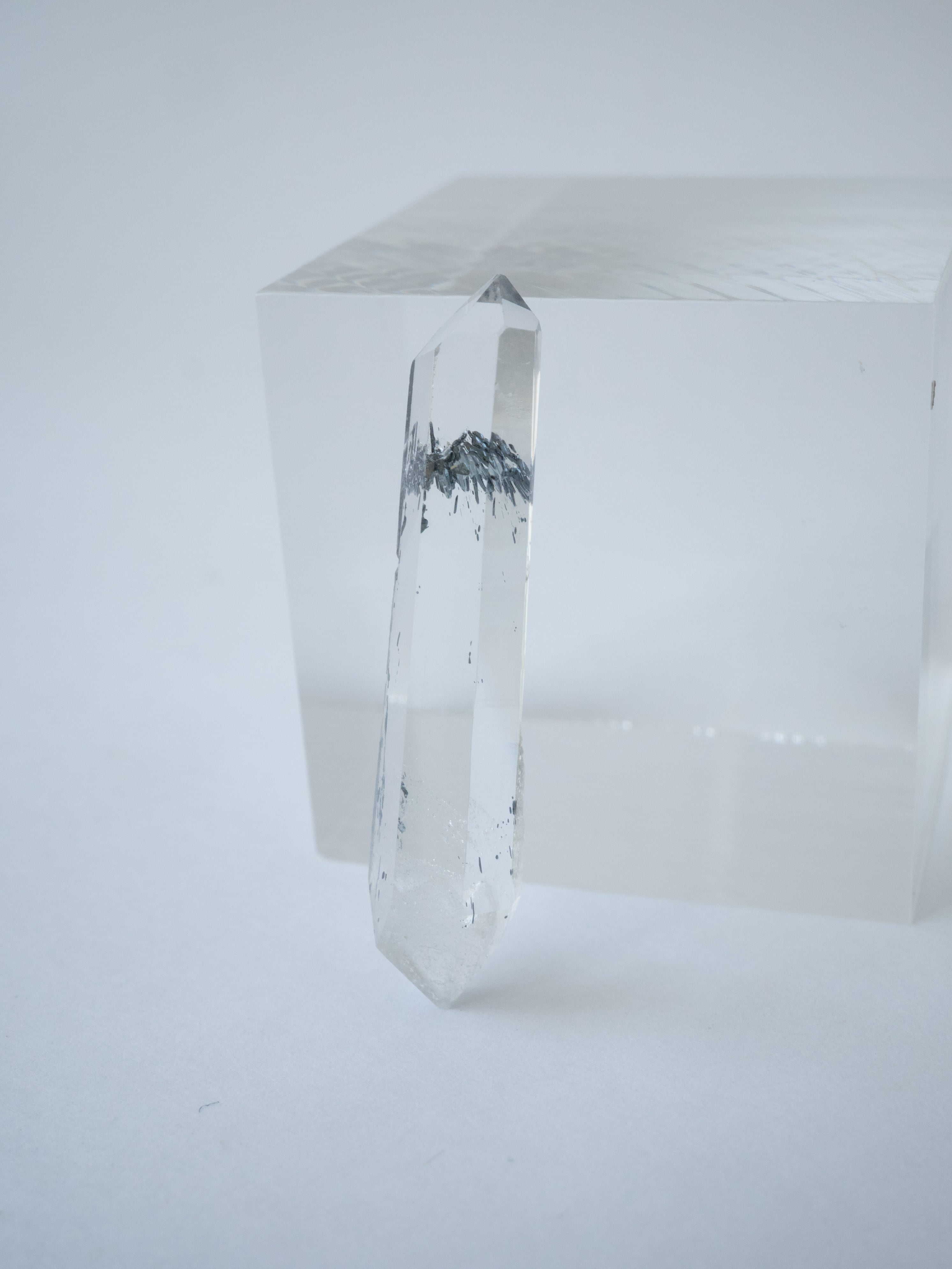 スティブナイトインクォーツ(Stibnite in Quartz)は、石英の中に針状や柱状のスティブナイト(輝安鉱)結晶が含まれるクォーツです。黒銀色の光沢と、剣のような結晶の形状が特徴的で、産出地域が限られるため、流通量も非常に少ない天然石です。