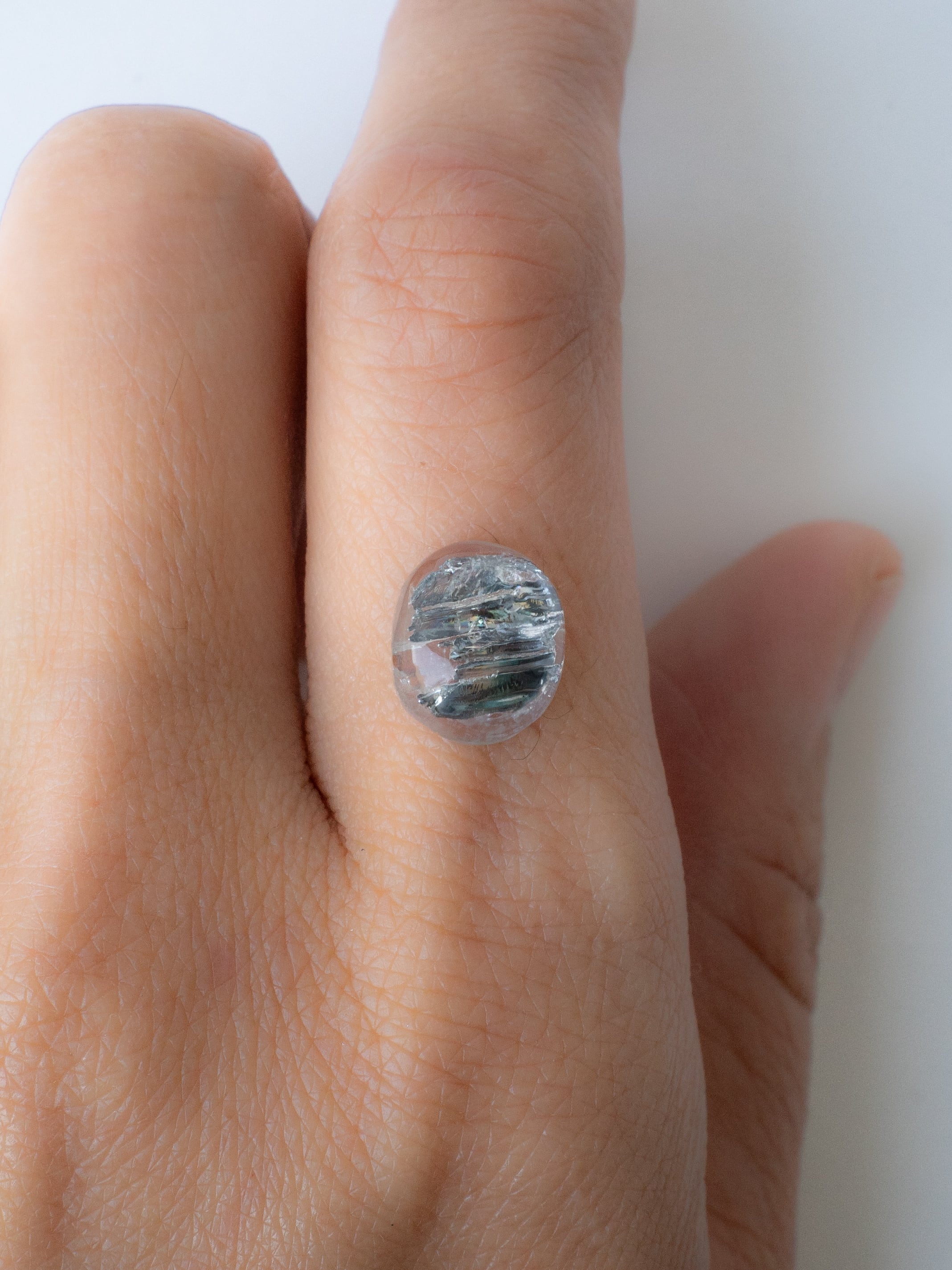 “Stibnite in Quartz” is a type of quartz that contains needle-like or columnar crystals of stibnite within it. It is characterized by its dark silver metallic luster and distinctive blade-like crystal formations. Due to its limited geographic occurrence, it is an exceptionally rare gemstone with very low availability on the market.