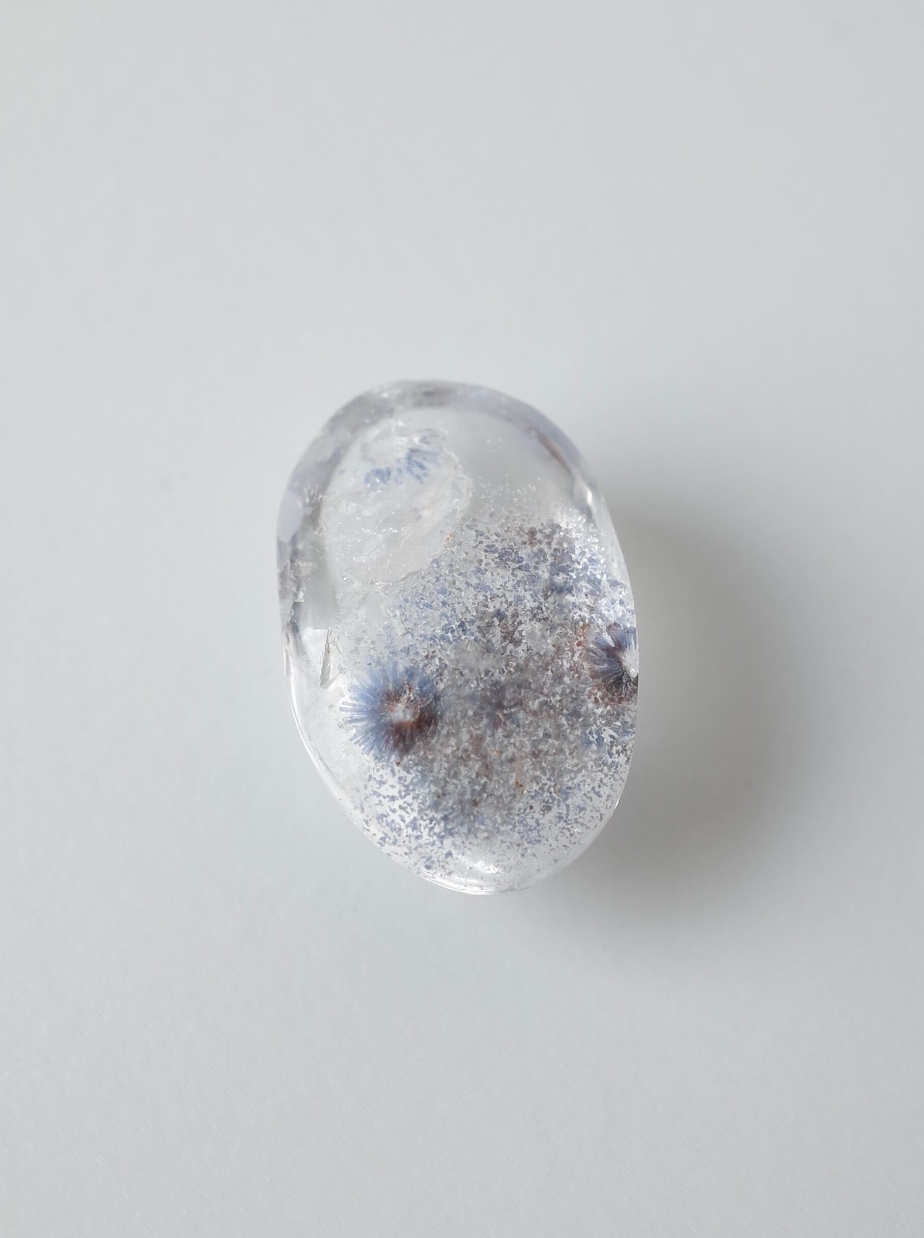 デュモルチェは水で濡らすことにより色が濃くなる特性がありますので、ジュエリーに加工する際にはお気をつけください。(乾くと元に戻ります)