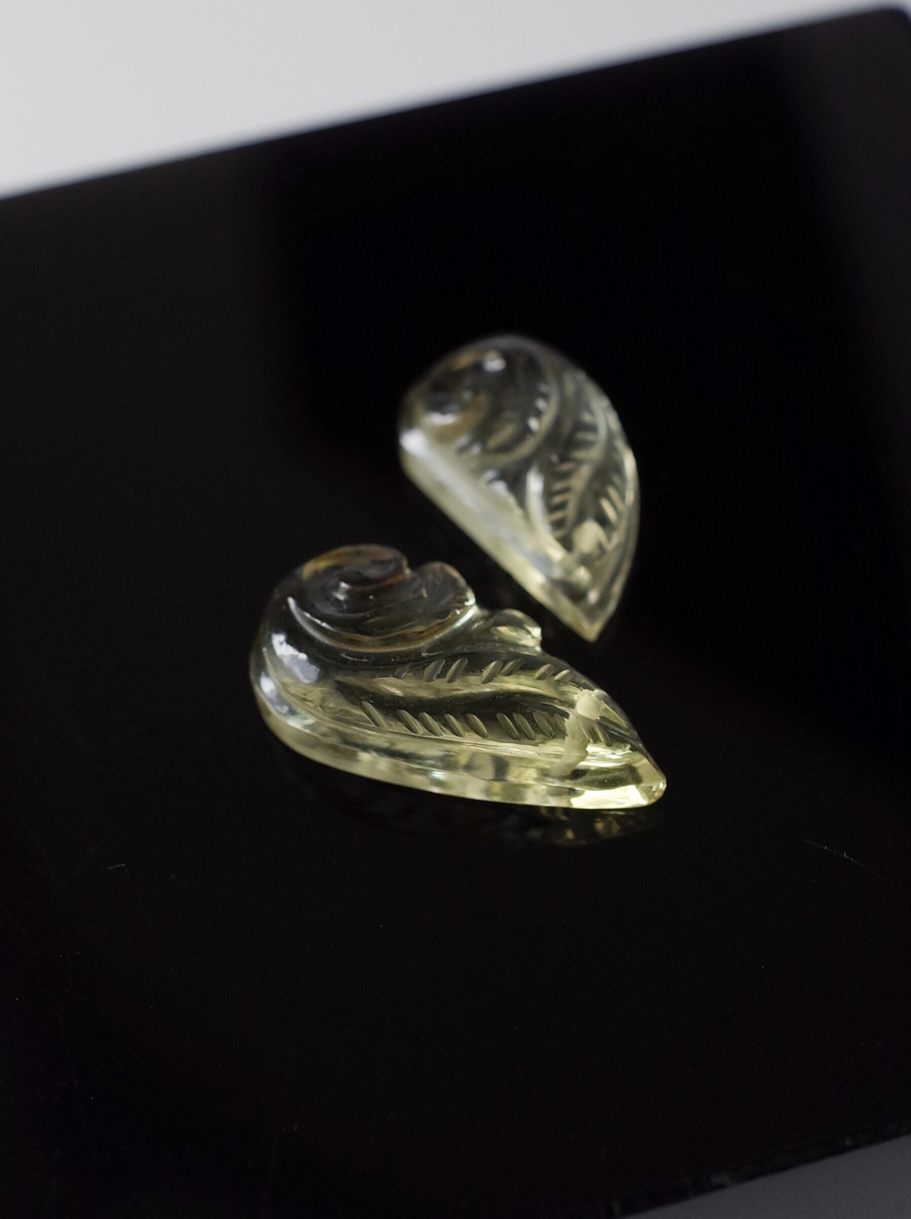 カービング レモンクォーツ - ペア 貫通穴あり - 002