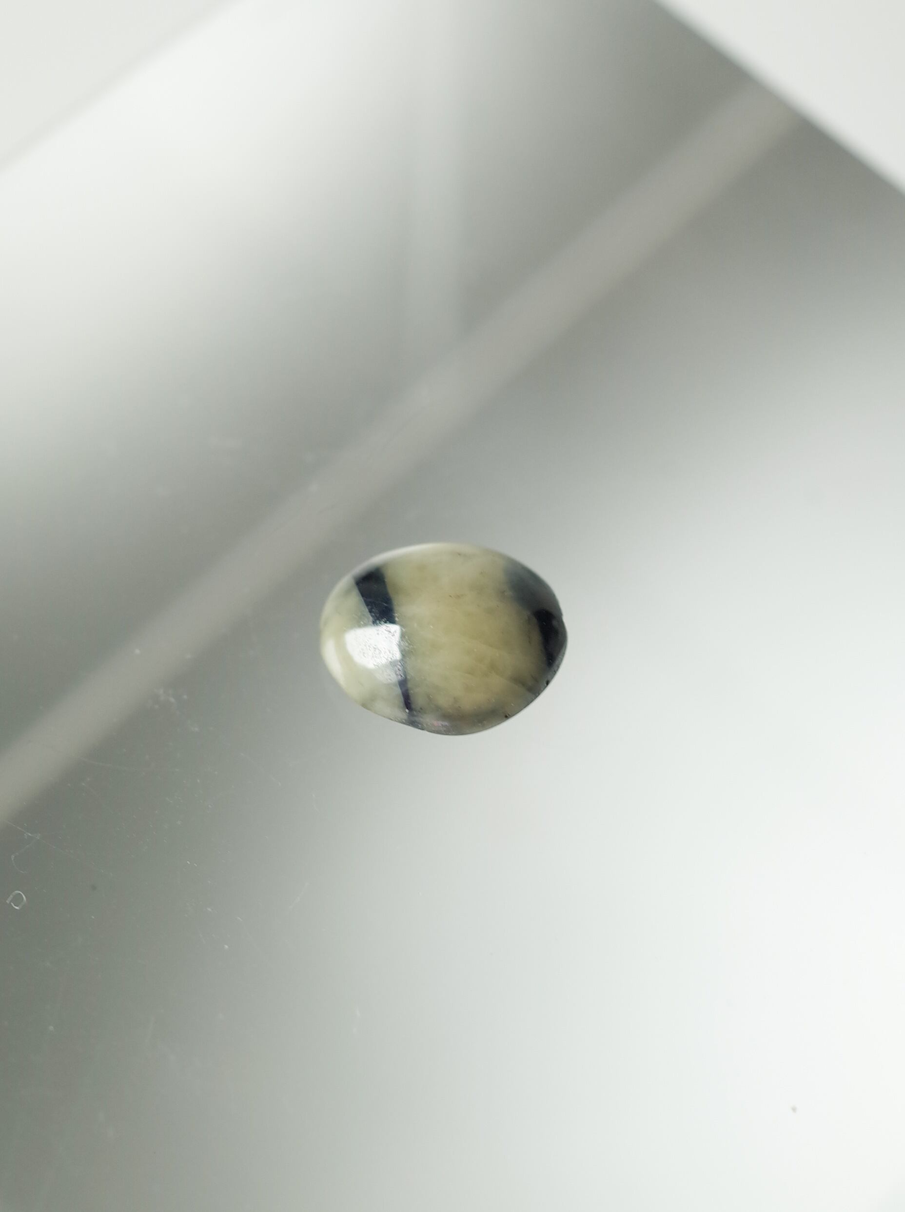 このタイプの石は底の方にイングルージョンを配置しカボションにすることで、水晶のレンズ効果により内包物を拡大させるようにカットされたものが多く、裏面は綺麗に研磨できないものや、充填処理が施されている石も多くございます。ご購入前に最後の裏面の写真もご確認ください。またインクルージョンクォーツは内包物を含んで研磨してあるため面傷の出やすいタイプのルースです。目立つキズは避けていますが、ごく小さなものに関して殆どのルースに入っています。見た目の美しさとバランスをみて判断していますので石の特徴としてお考えください。