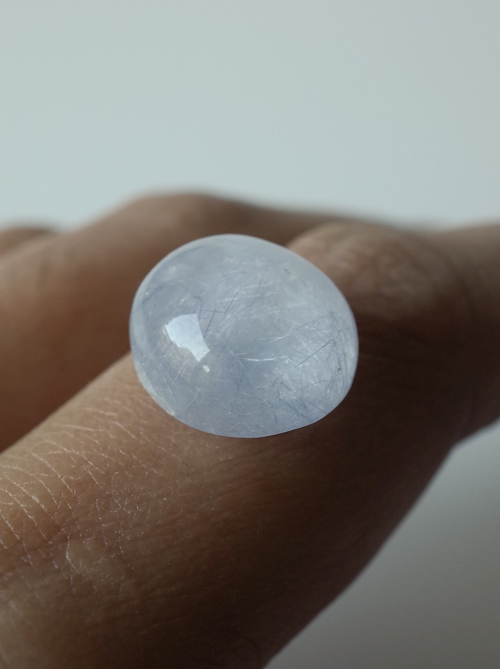 雪原に青い花が咲いたような、ホワイトガーデンクォーツの要素を持ったデュモルチェライトインクォーツ。まんまるなシルエットがとても可愛いです。