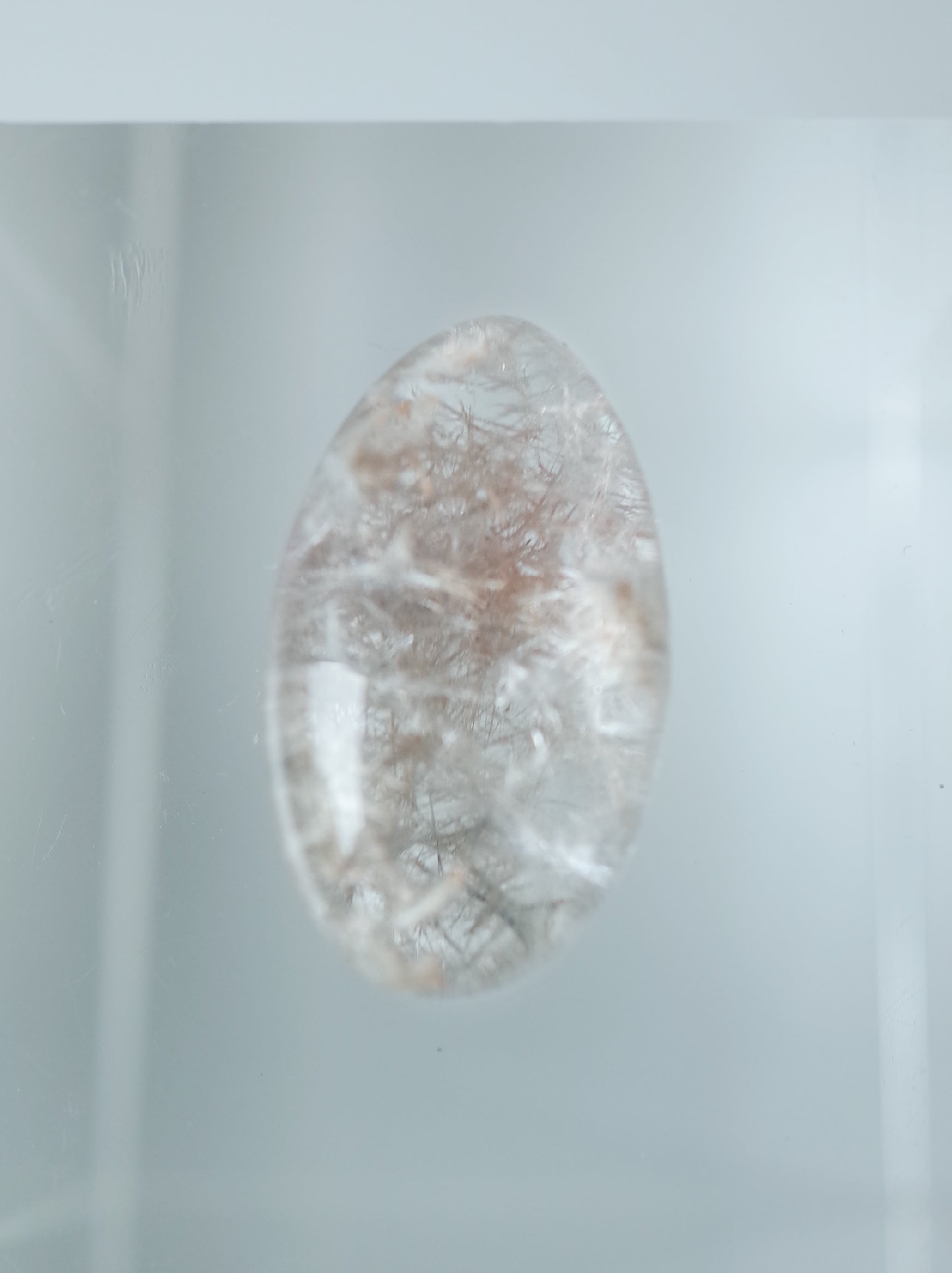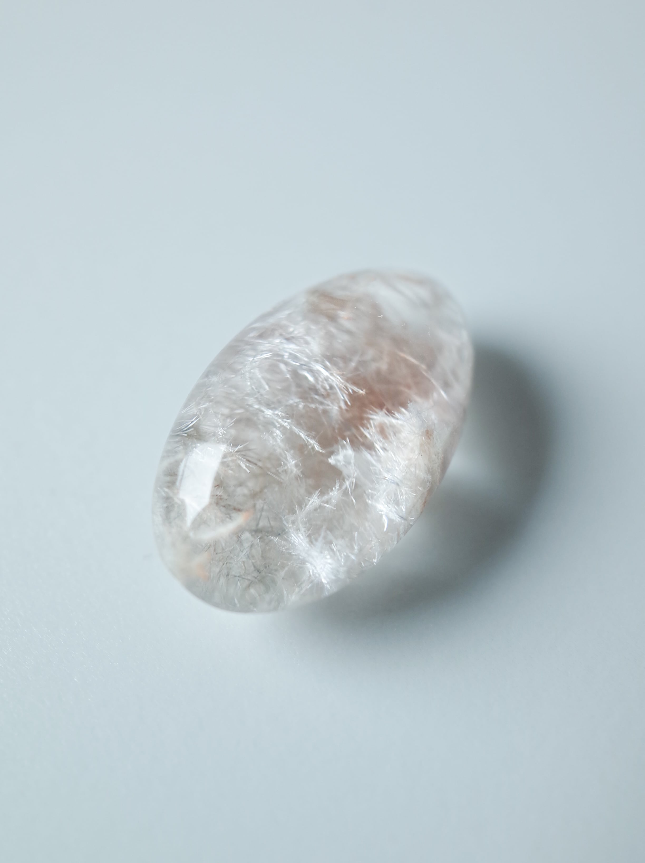 淡い色合いのデュモルチェライトインクォーツ。小さな結晶が入った貫入タイプです。