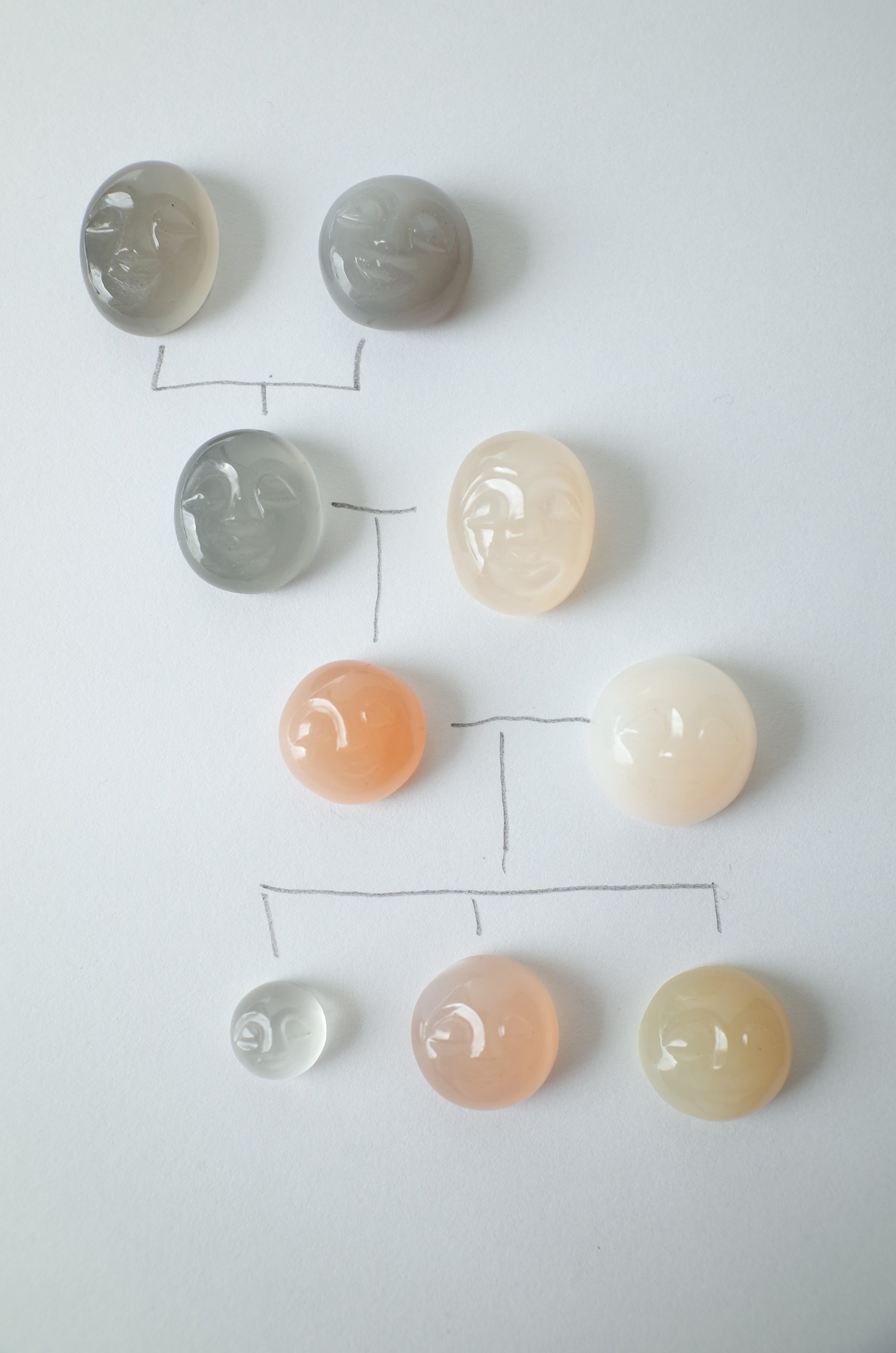 なんとも言えない微笑んだ顔のカービングを施したムーンストーンファミリーです。