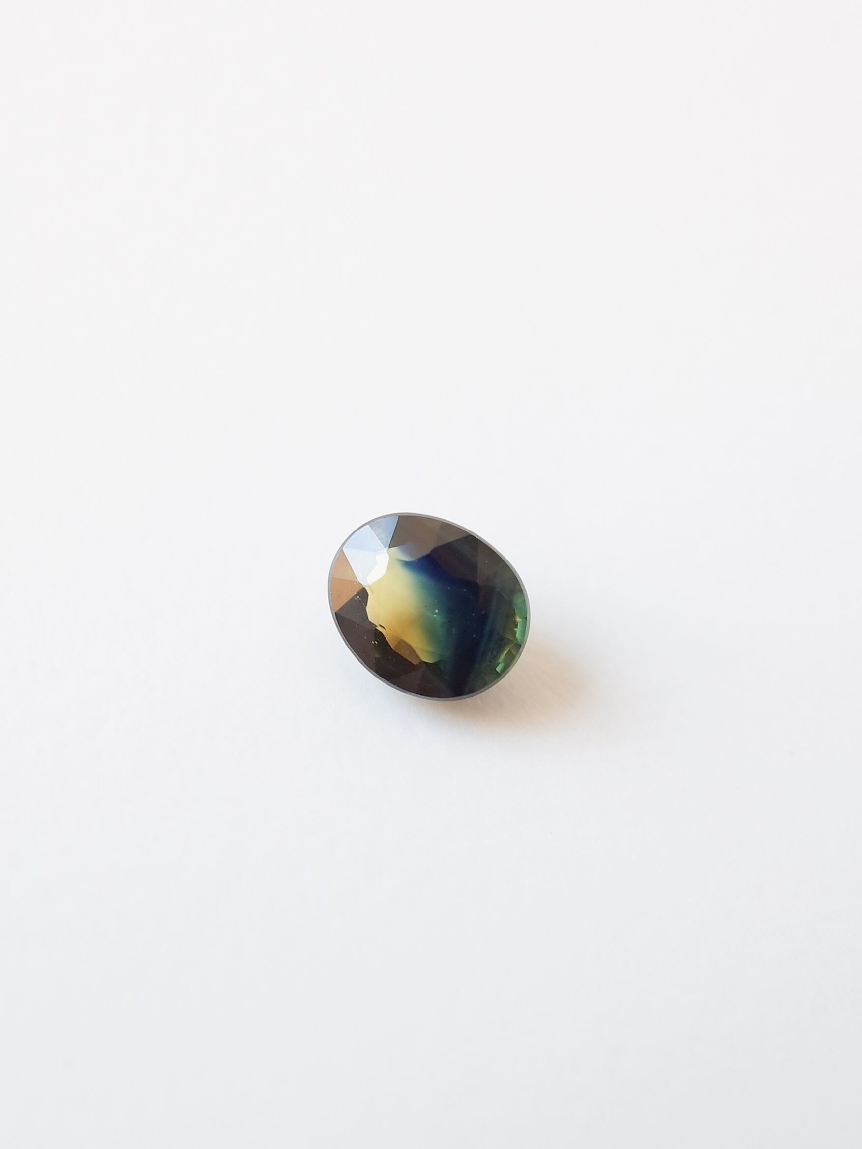 色のコントラストが個性的なバイカラーのサファイア。同じコランダムの中でも単色ではなく、成長時期によって色の差が生じている部分や、成長線が見られる部分を切り取ったルースです。その唯一無二の特別感でここ数年人気を集めています。ジュエリーに仕立てる際も特別なアクセントを与えてくれます。