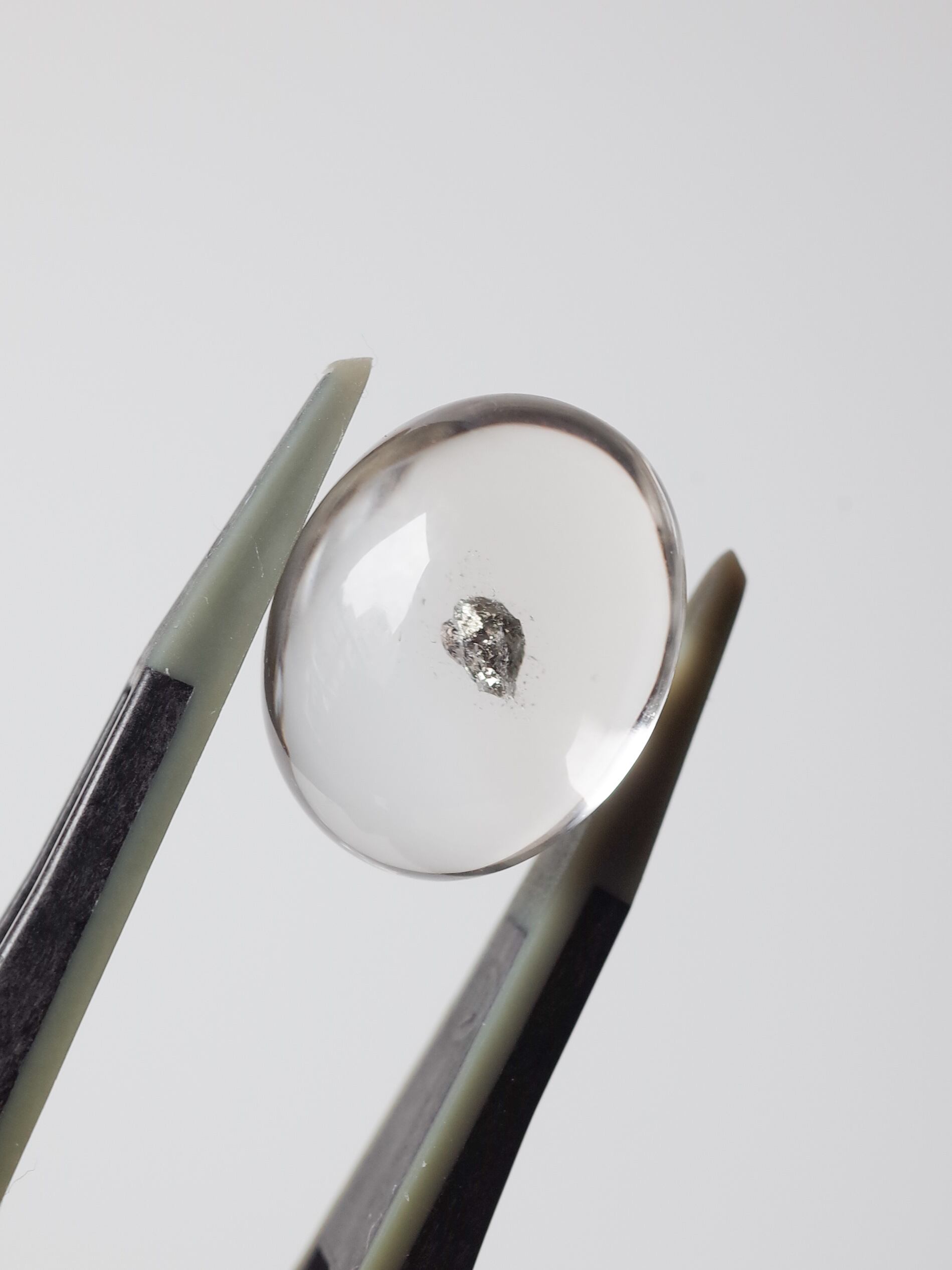 ギリシャ語で「パイ」は、「火」を意味し、昔は火打ち石として使用されていた歴史があります。パイライトは硫化鉱物のため、原石の状態で保存するとサビやすいのですが、水晶の中に閉じ込められているのでずっと綺麗な結晶を楽しめることができます。