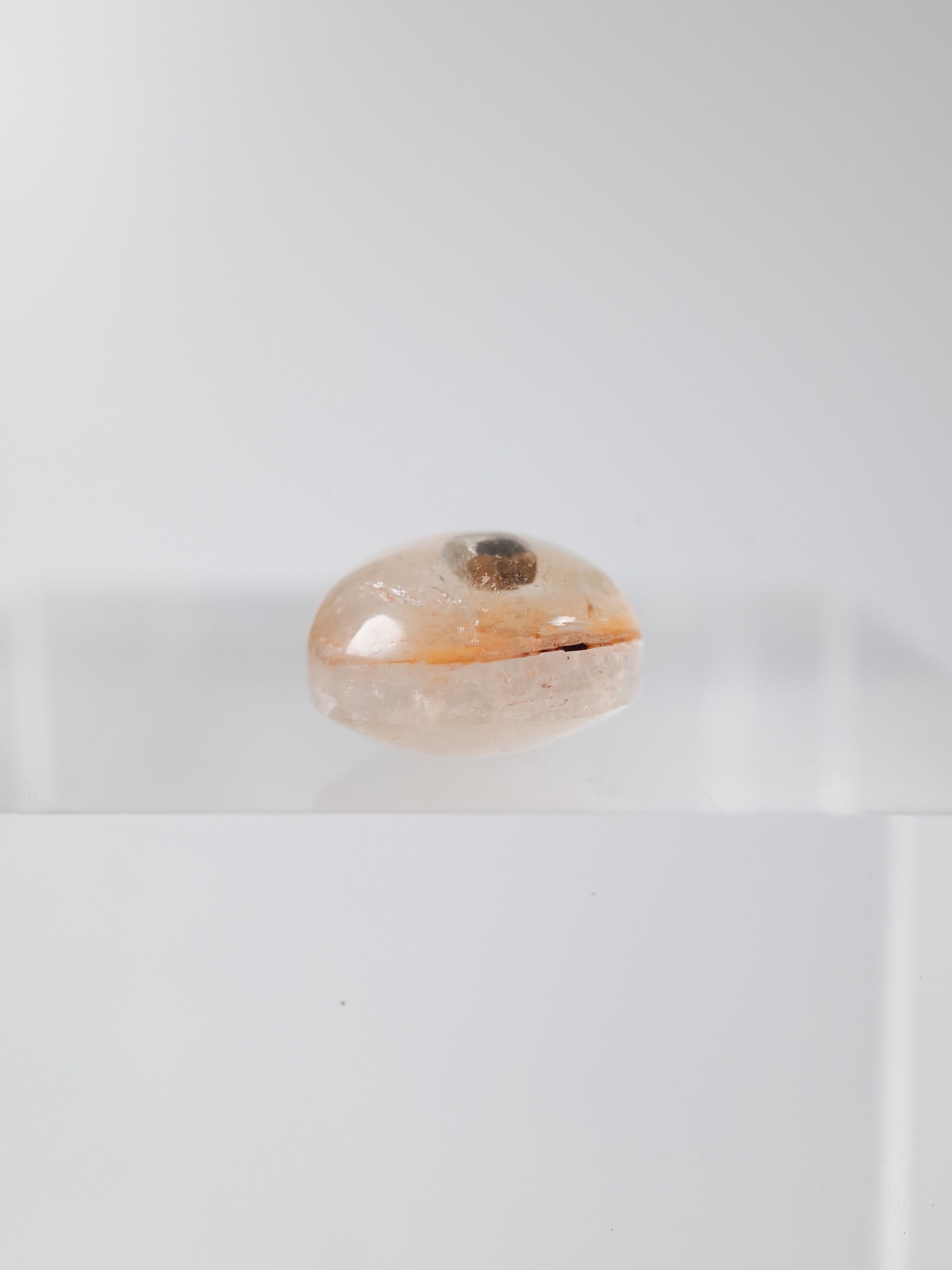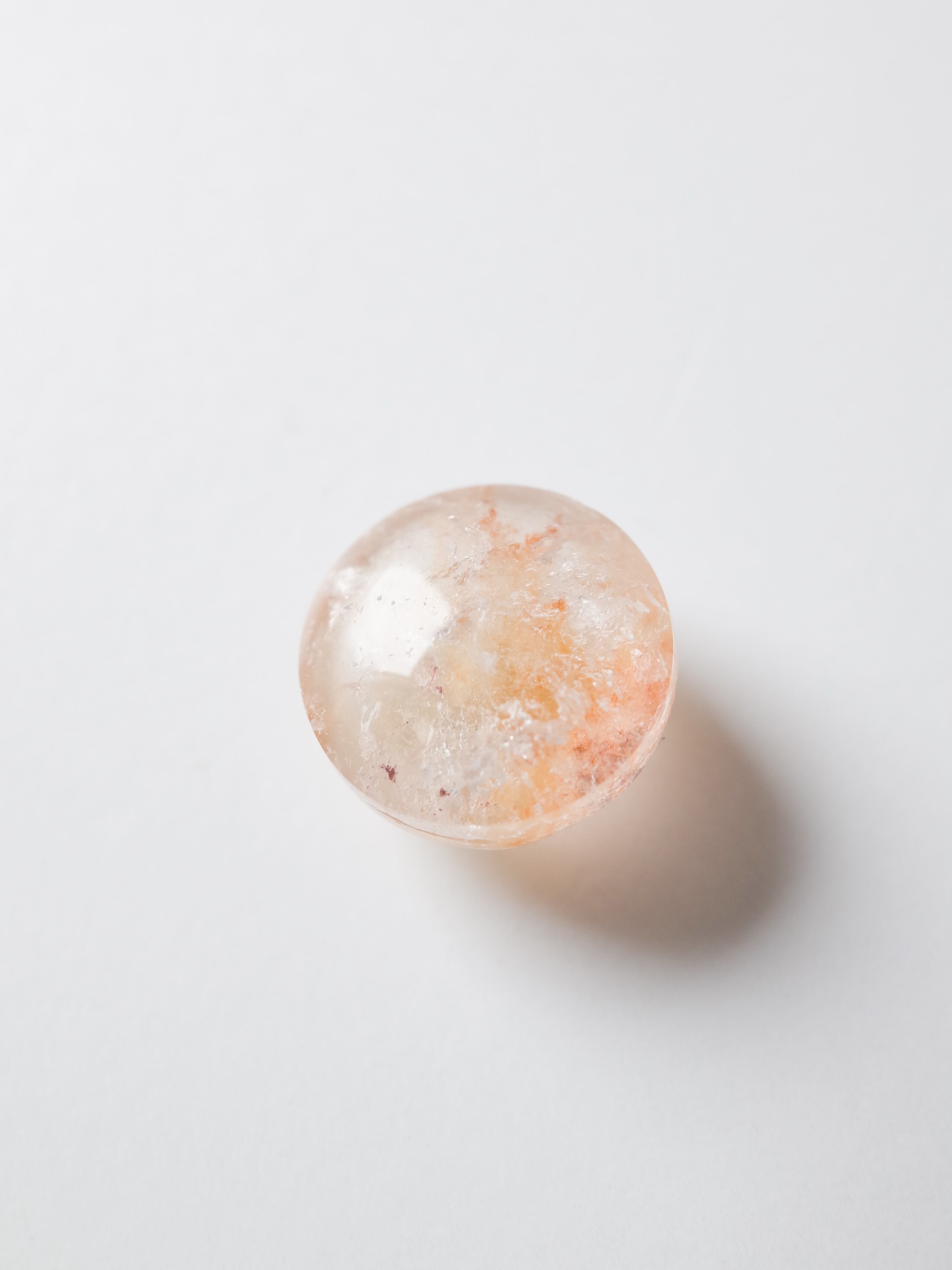 ギリシャ語で「パイ」は、「火」を意味し、昔は火打ち石として使用されていた歴史があります。パイライトは硫化鉱物のため、原石の状態で保存するとサビやすいのですが、水晶の中に閉じ込められているのでずっと綺麗な結晶を楽しめることができます。