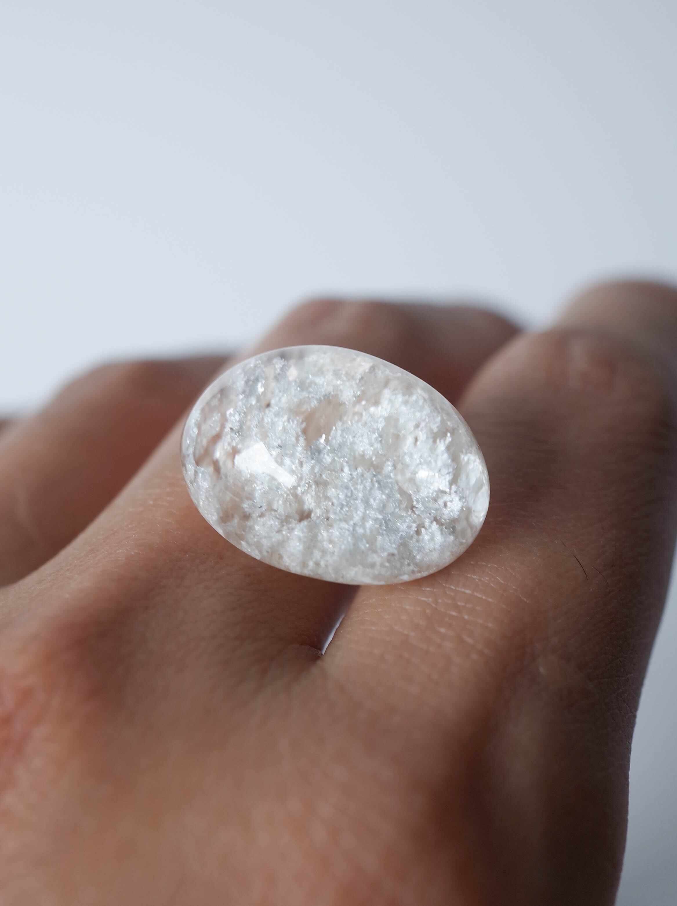SELSHA の顔ともなっている『ホワイトガーデンクォーツ』中に内包された白雲母が雪のようだったり、空に浮かぶ雲のようだったり、真っ白な世界を楽しませてくれます。
