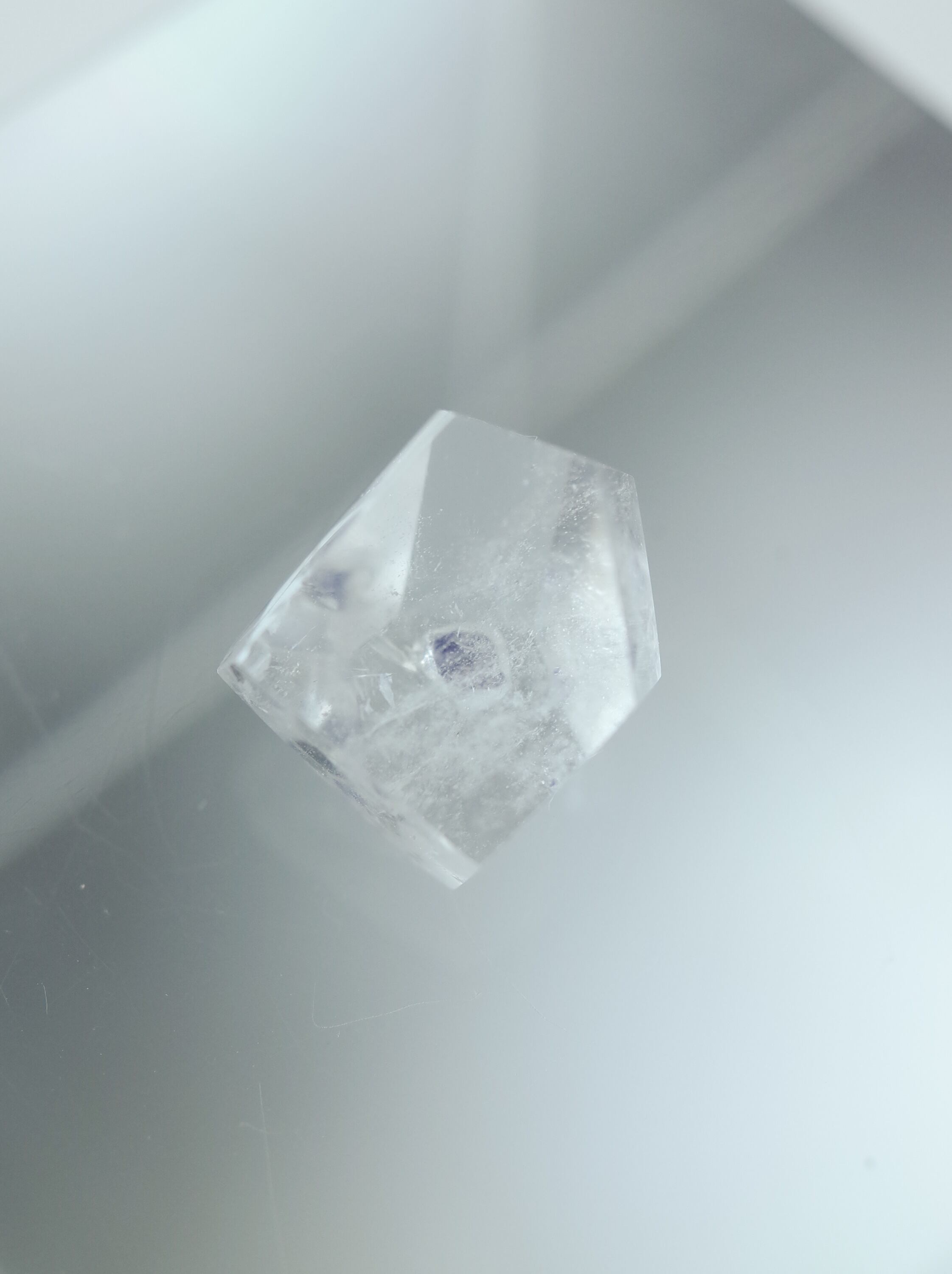 淡いブルーのフローライトの結晶を内包した「フローライトインクォーツ」。他にはないフローライトらしい独特の色合いと、綺麗な結晶の形をお楽しみください。