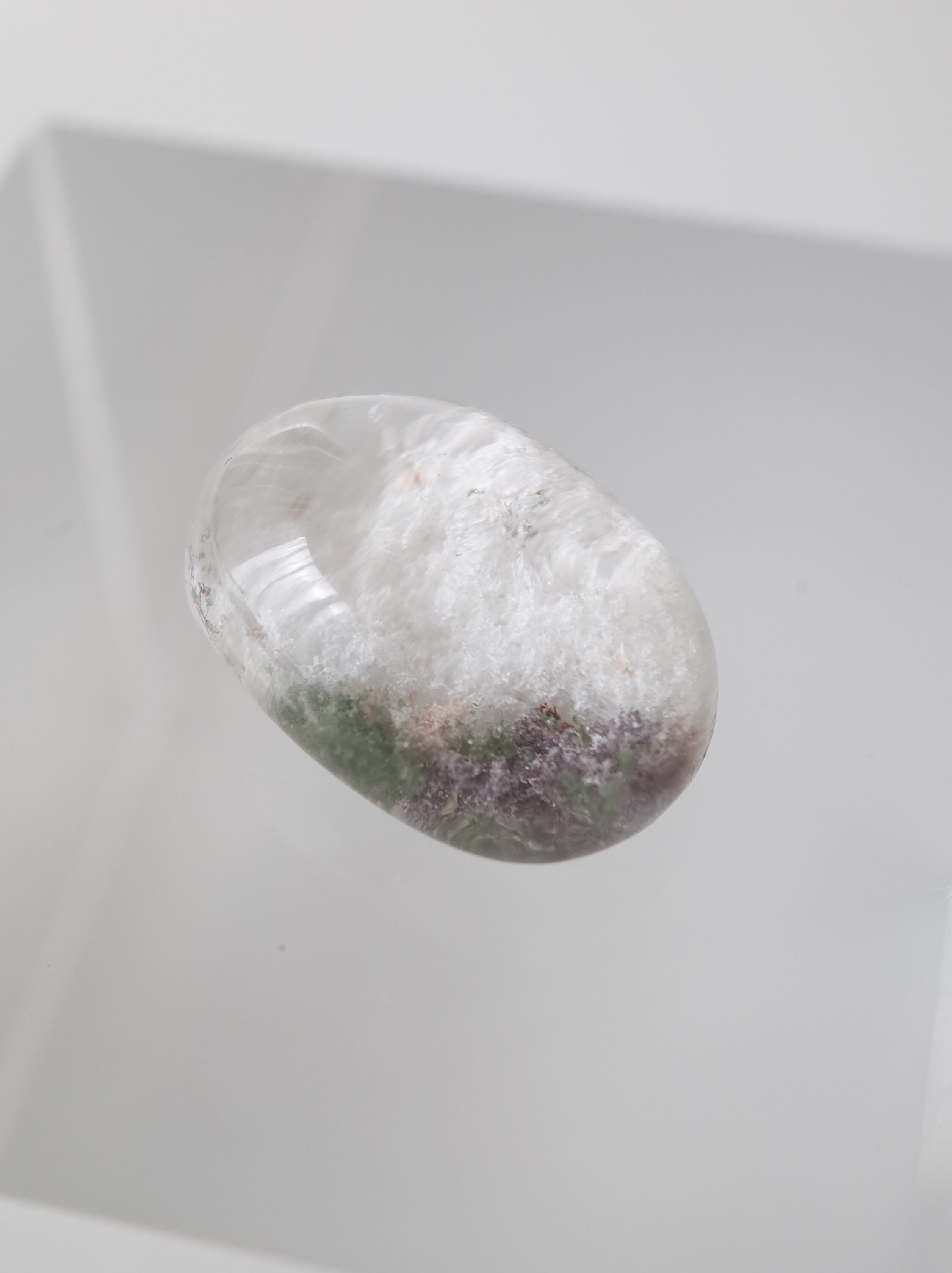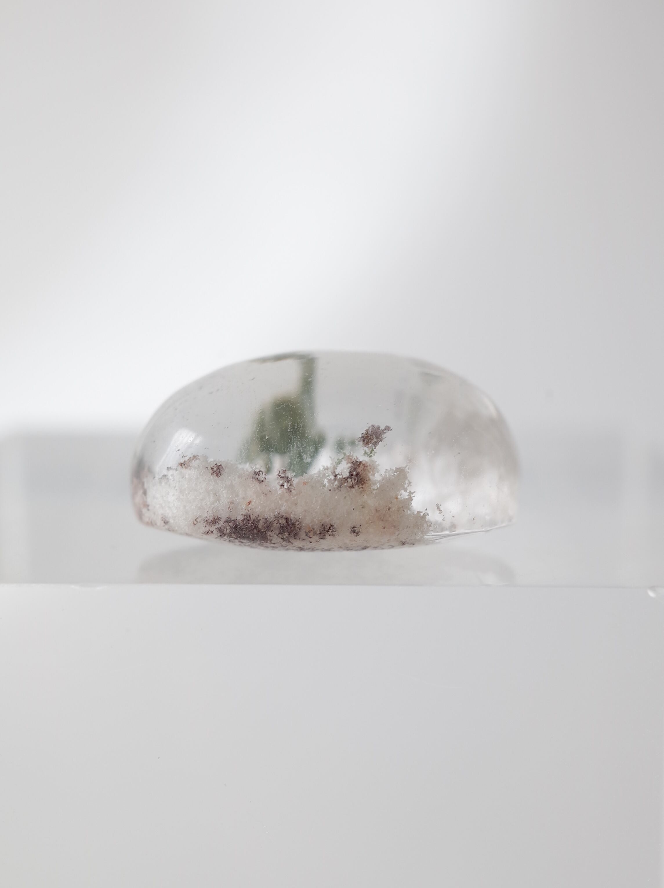 SELSHA の顔ともなっている『ホワイトガーデンクォーツ』中に内包された白雲母が雪のようだったり、空に浮かぶ雲のようだったり、様々な景色を楽しませてくれます。こちらは真っ白ではなく、少し色味の混じった春らしいタイプです。