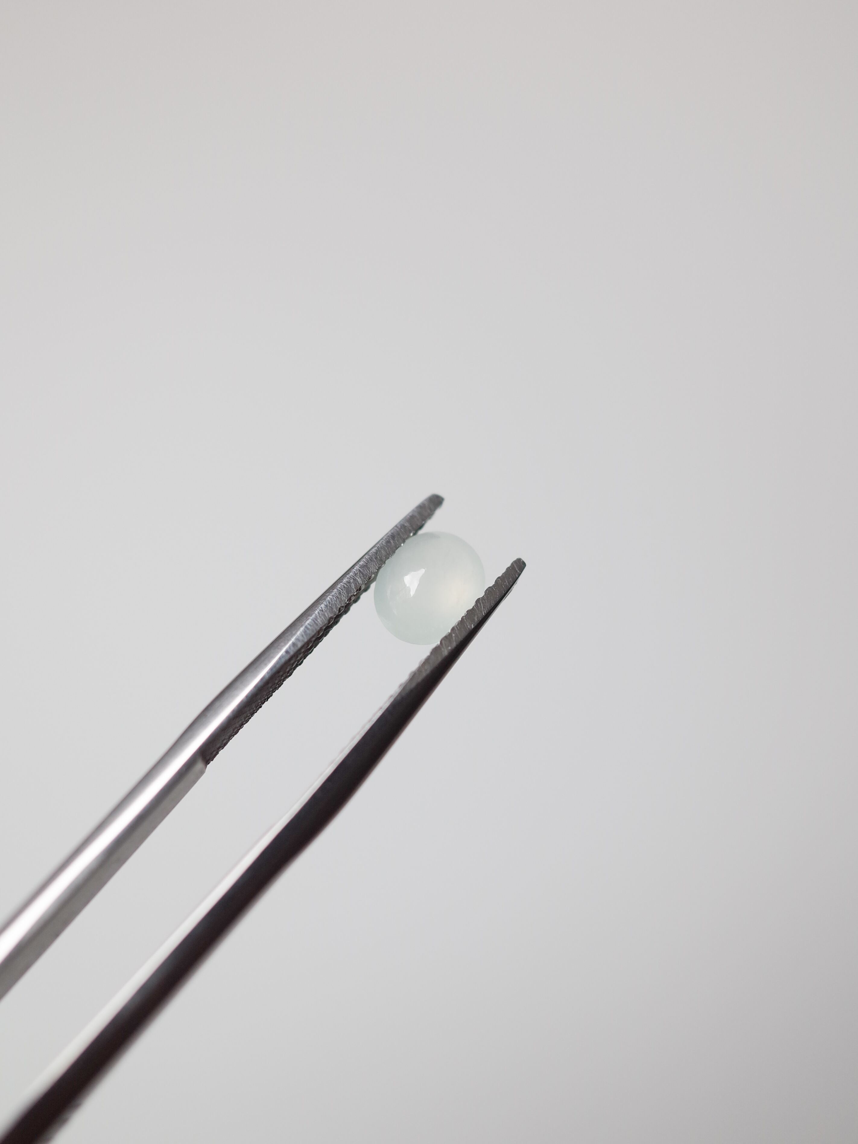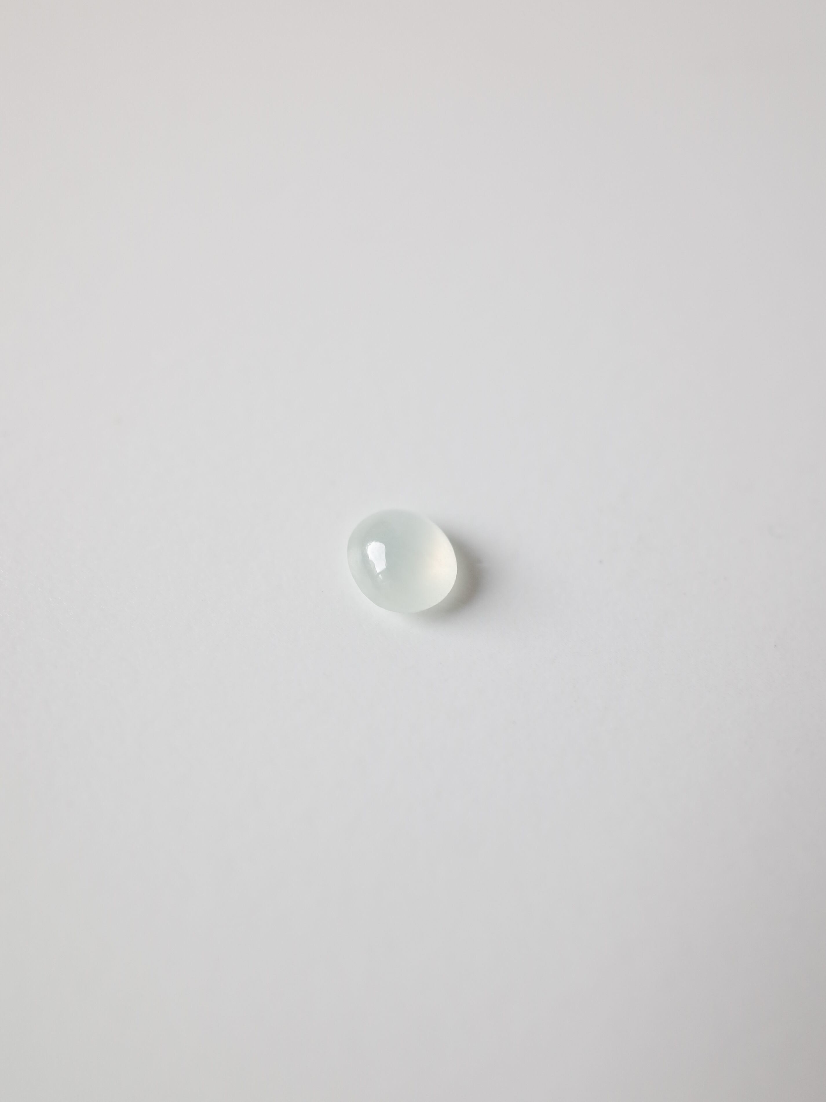 こちらの翡翠は表面の艶を向上させるための通常ワックス加工が施されています。この処理は、ほとんどの翡翠ルースの仕上げとして行われている工程です。内部まで樹脂を浸透させた含浸処理とは異なりますので、安心してご購入ください。