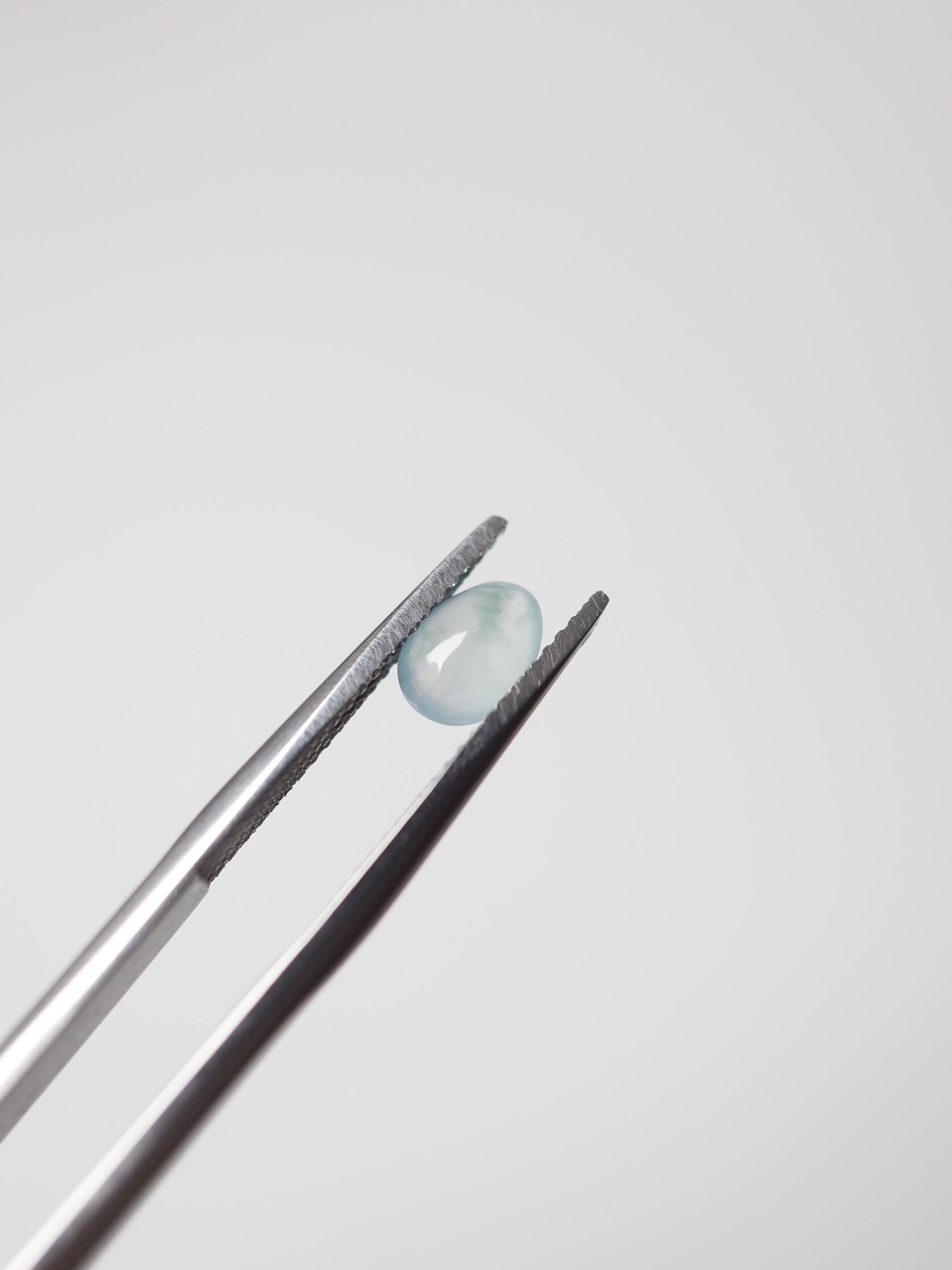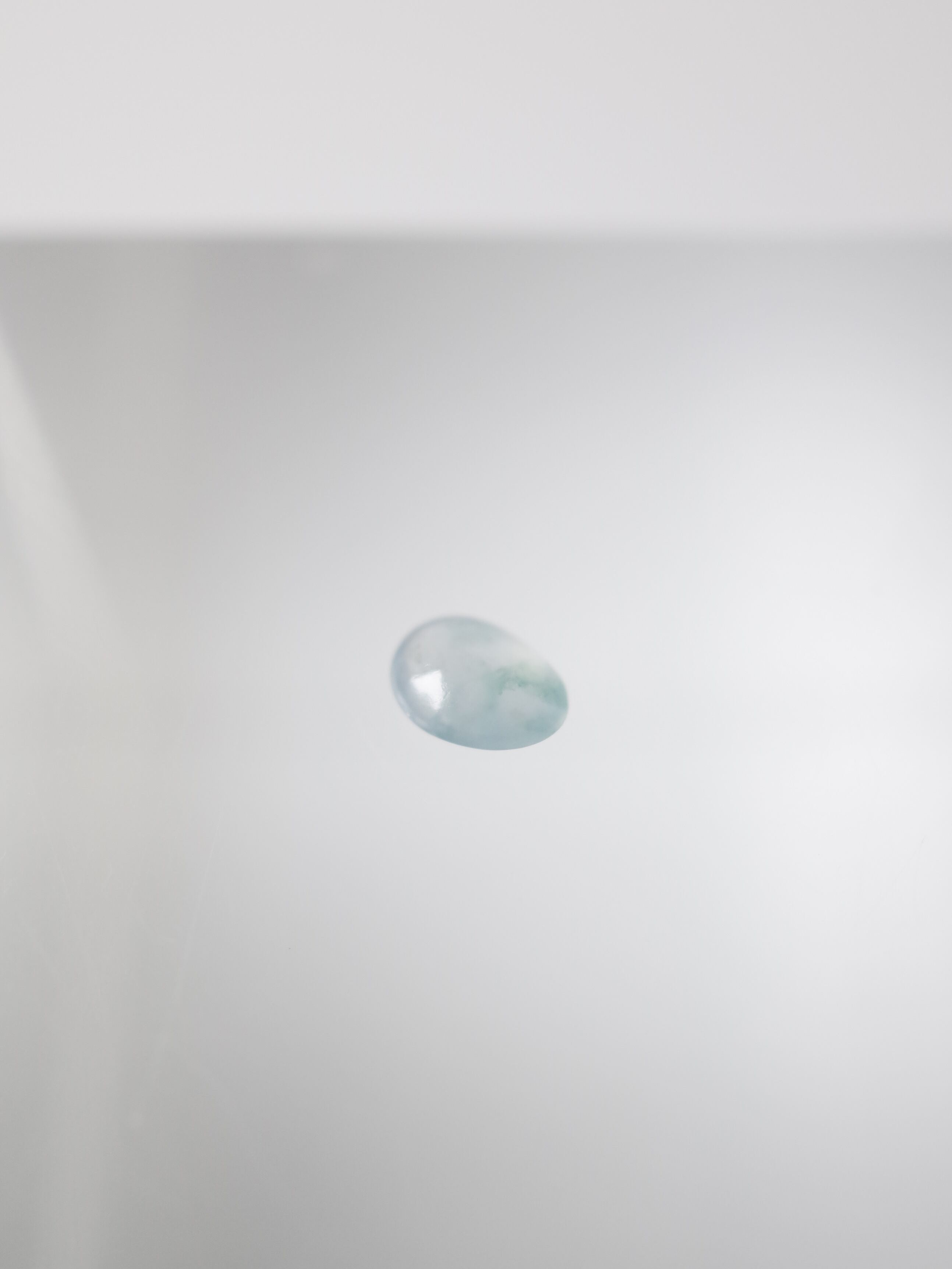 こちらの翡翠は表面の艶を向上させるための通常ワックス加工が施されています。この処理は、ほとんどの翡翠ルースの仕上げとして行われている工程です。内部まで樹脂を浸透させた含浸処理とは異なりますので、安心してご購入ください。