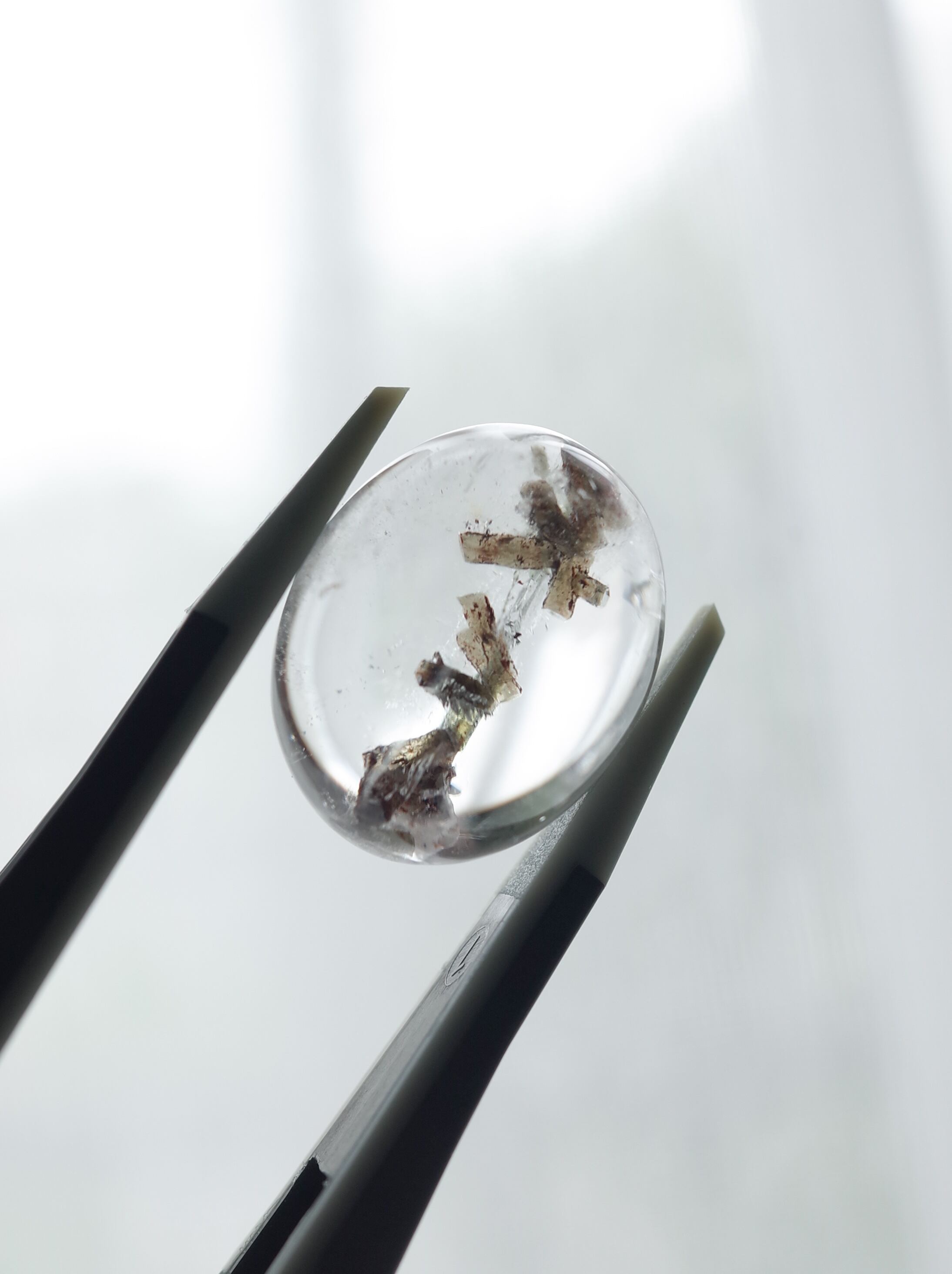 串刺しのように連なった入り方が面白いマイカインクォーツです。