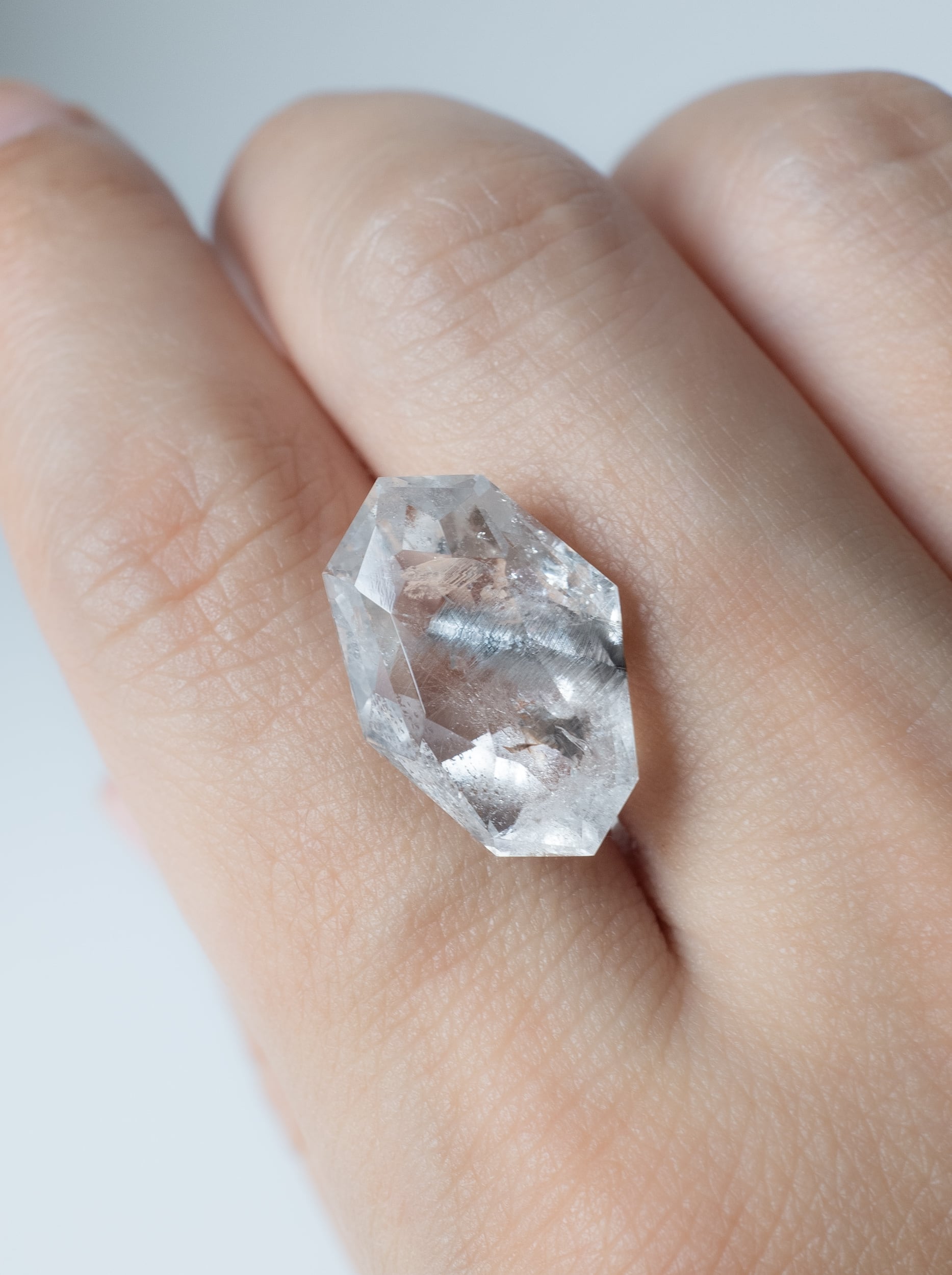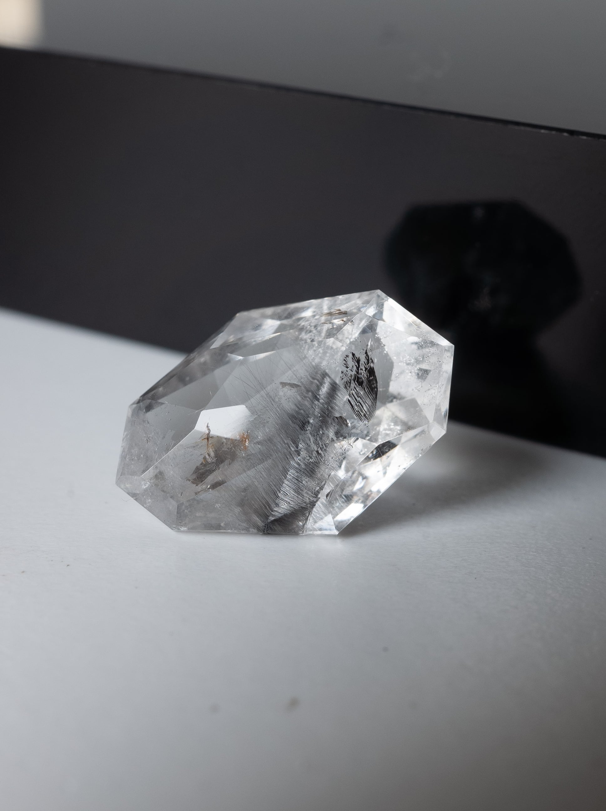 こちらは若手研磨師の大城かん奈さんがカットを担当してくださっている、通称『カンナカットシリーズ』。ランダムなカットによる反射の面白さとモダンなフォルムが魅力のルースです。