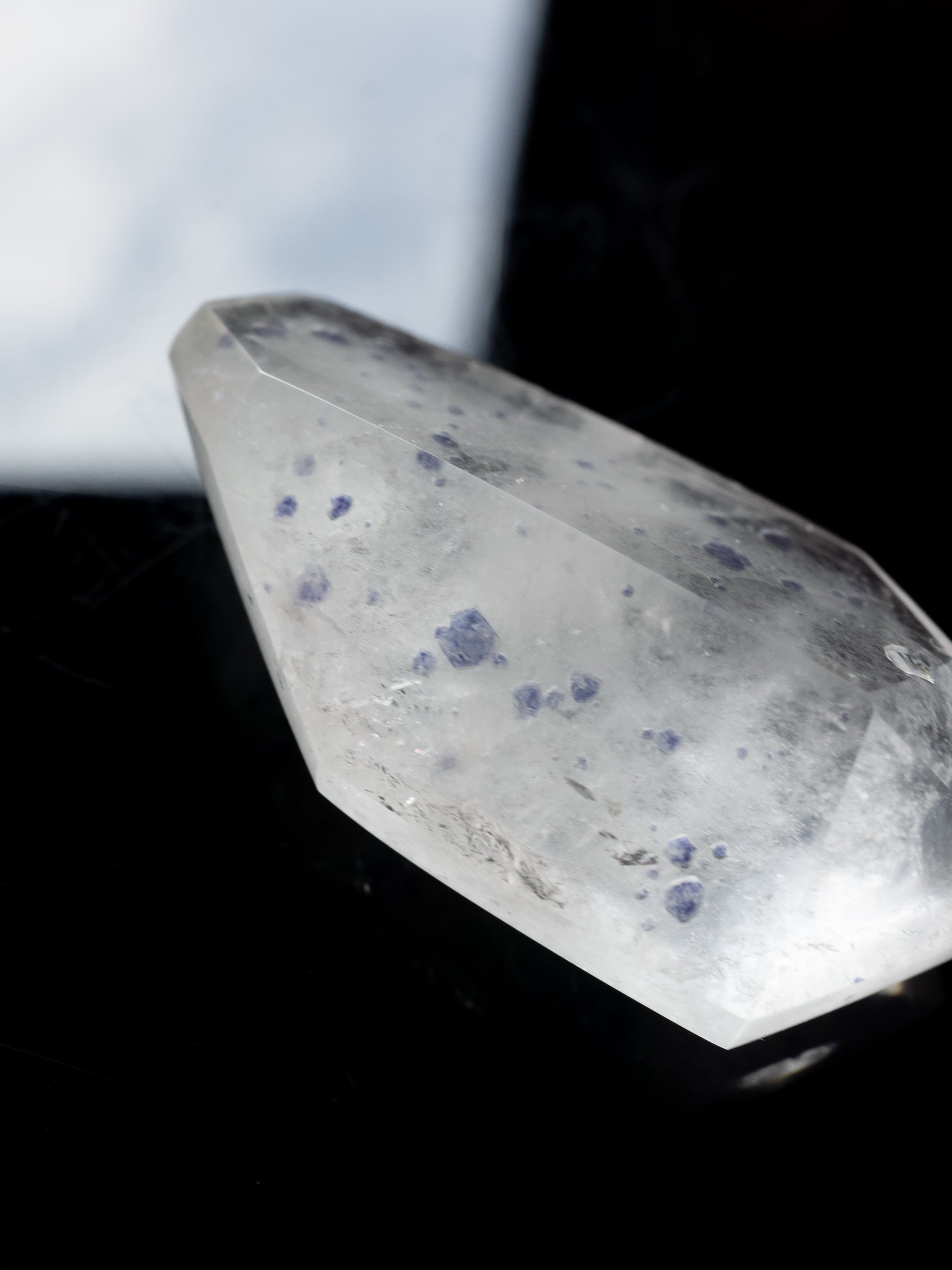 淡いブルーのフローライトの結晶を内包した「フローライトインクォーツ」。他にはないフローライトらしい独特の色合いと、綺麗な結晶の形をお楽しみください。