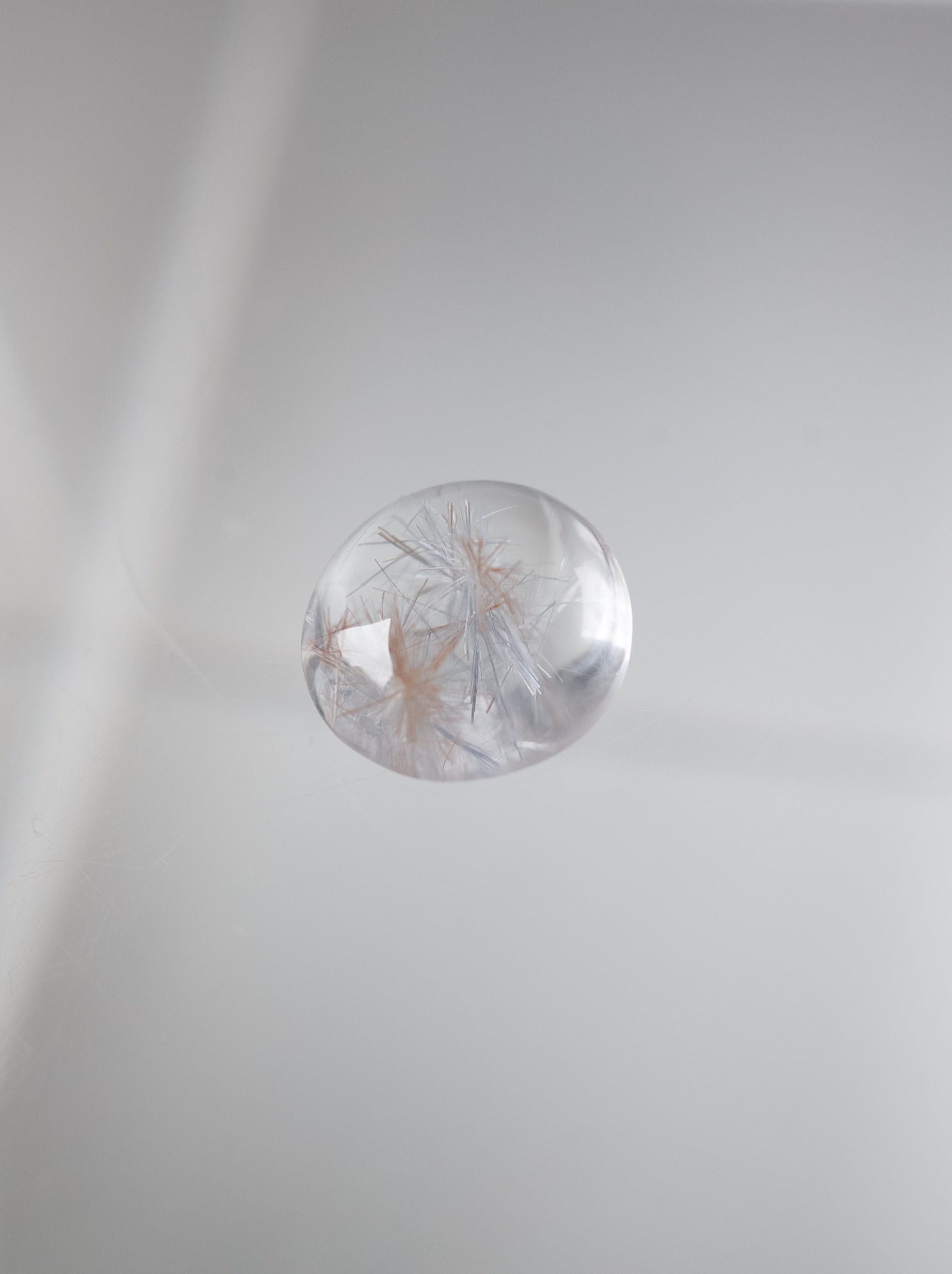 淡い色合いと控えめなインクルージョンは、陽射し浴びた樹氷のようにキラキラと輝きます。
