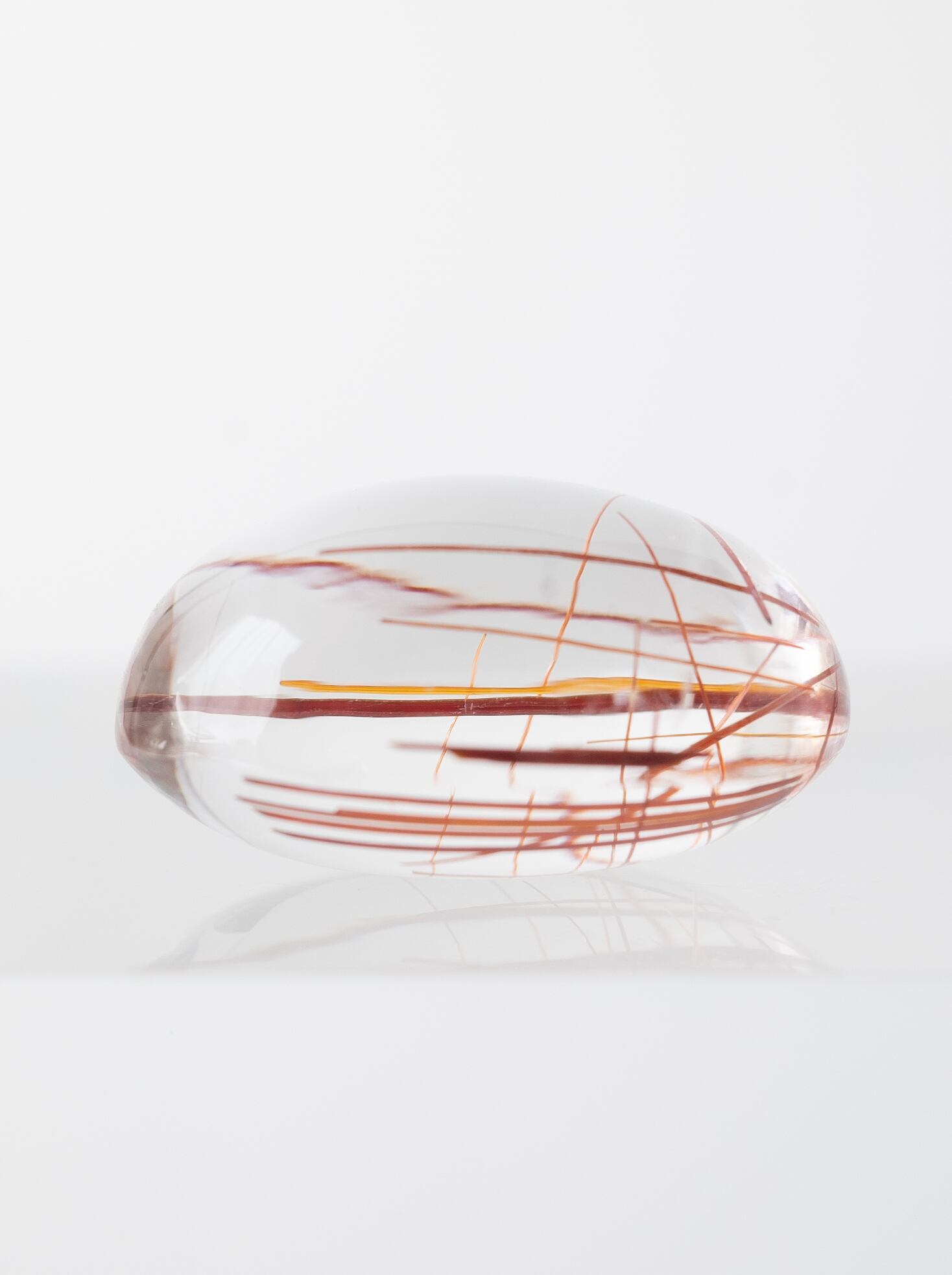 『レッドルチルクォーツ』は、一般的に知られるゴールドのルチルとは違い、鉄を微量含まれることによって酸素と反応し、赤い色に見えるルチルクォーツです。チタン鉱物特有の金属光沢があり、透明度の高いクォーツの中で反射して輝く姿はとても魅力的です。金色や褐色よりもはるかに産出量が少ないため、数がご用意できない天然石でもあります。