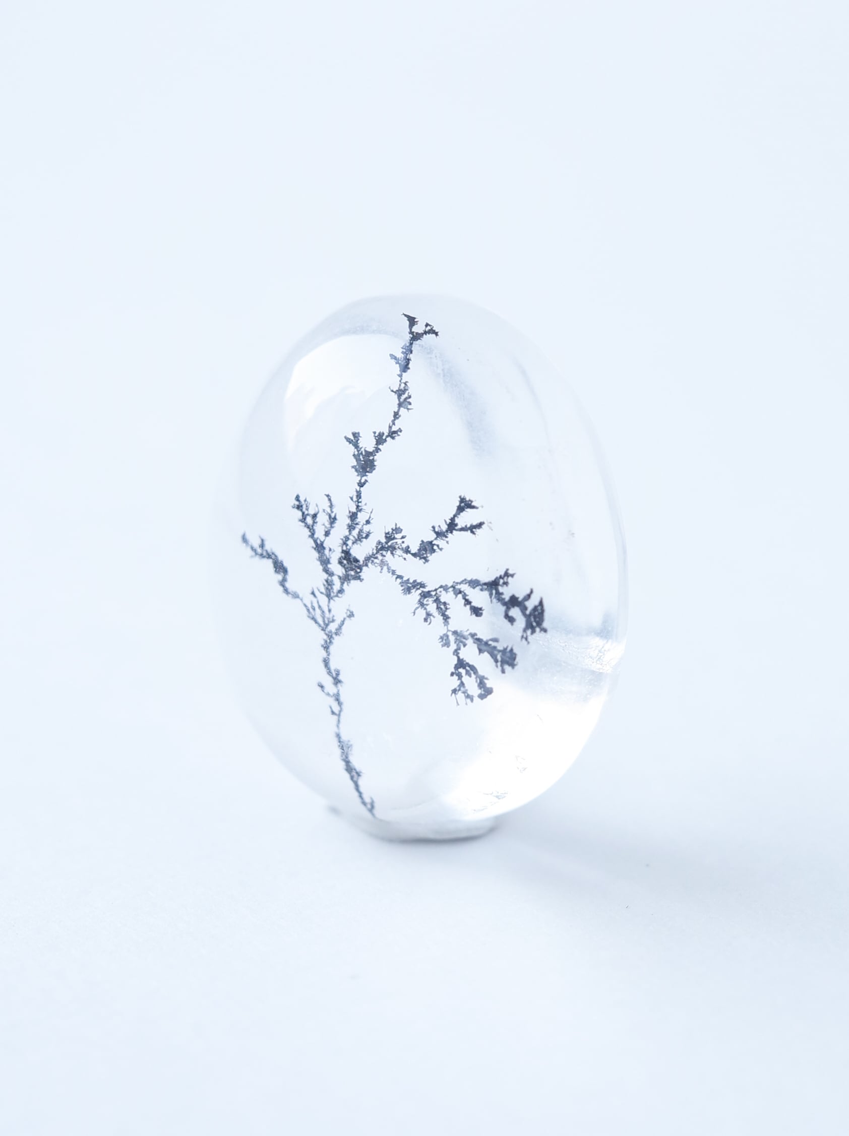 クォーツの中に、まるで植物をそのまま閉じ込めたかのような姿が魅力のデンドリティッククォーツ。水晶内部の薄膜状の割れ目に、主に酸化マンガンなどの成分が入り込むことで「樹枝状晶・デンドライト」が形成され、この美しい景色を創り出します。