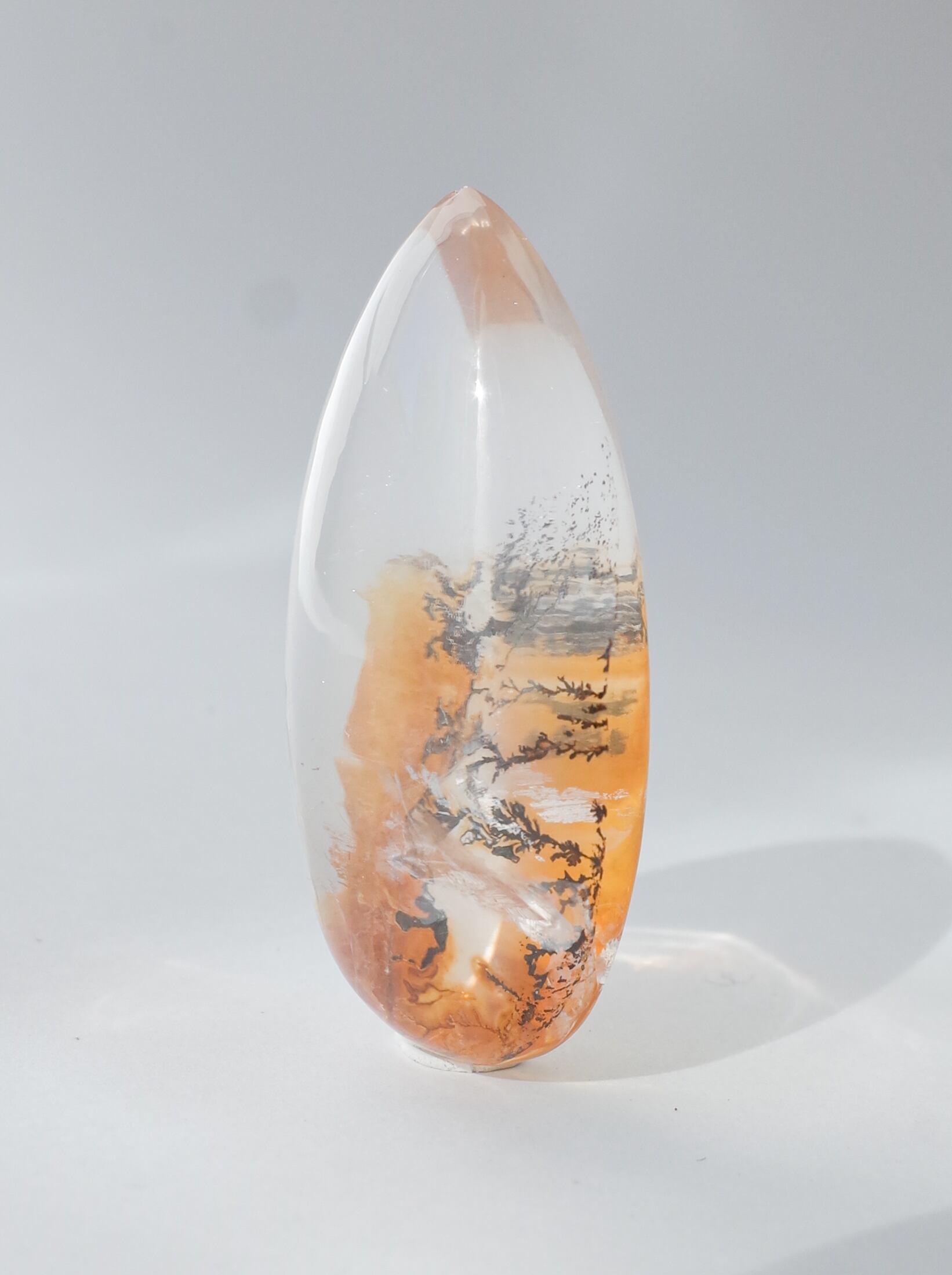 クォーツの中に、まるで植物をそのまま閉じ込めたかのような姿が魅力のデンドリティッククォーツ。水晶内部の薄膜状の割れ目に、主に酸化マンガンなどの成分が入り込むことで「樹枝状晶・デンドライト」が形成され、この美しい景色を創り出します。