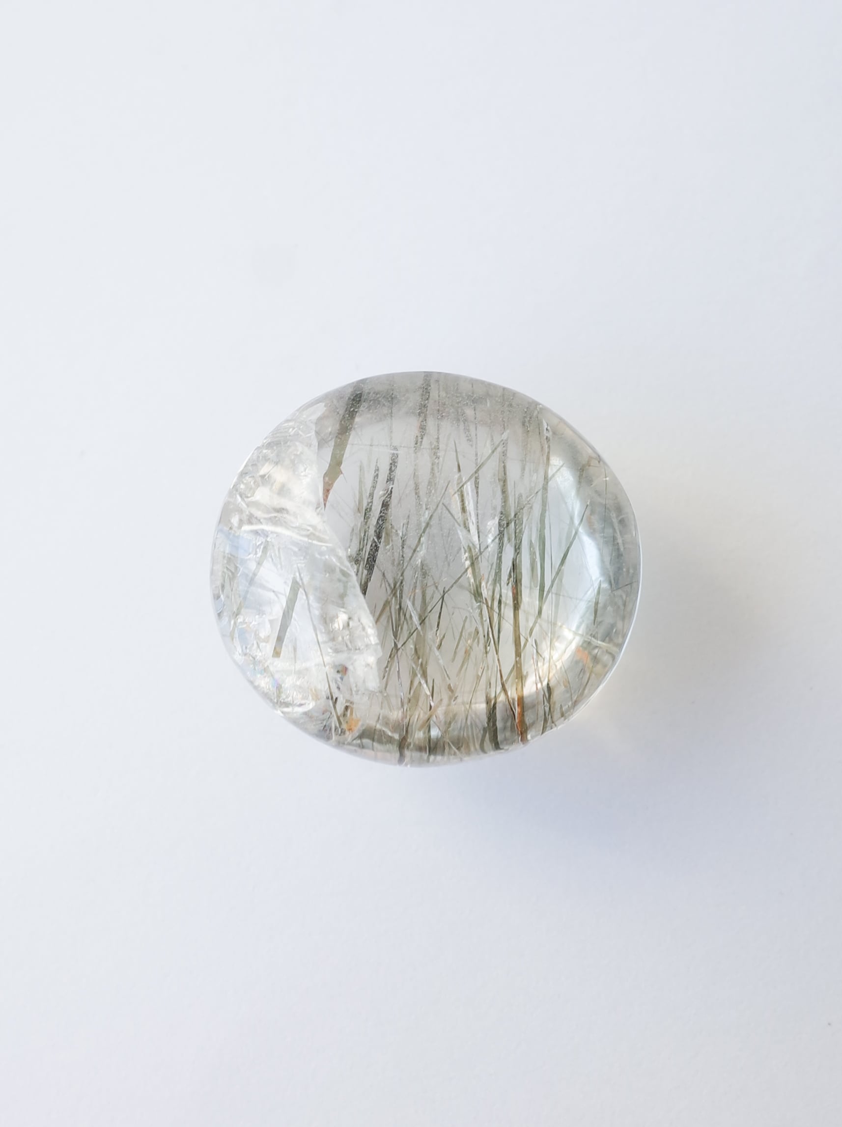 和名で緑簾石と呼ばれるエピドートを内包したエピドートインクォーツ。太い結晶が入ったものは竹のように見えたり、細い結晶が多く入ったものは、その見た目から別名『草入り水晶』とも呼ばれています。