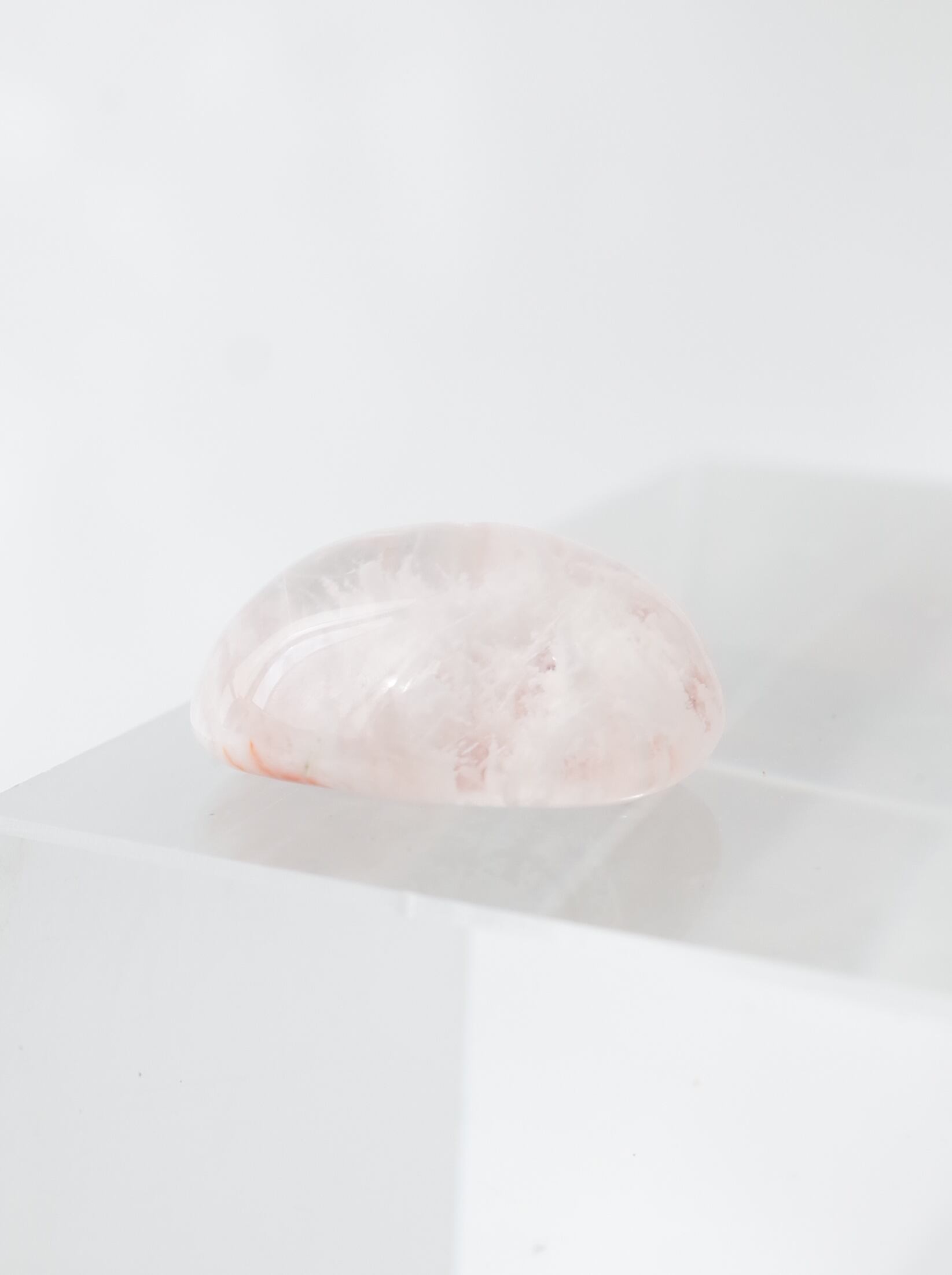 Sericite, known as "silk mica" in Japanese, is admired for its snow-like whiteness and soft, gentle appearance. There are two types: Sericite-in-Quartz, where sericite is enclosed in colorless to milky white quartz, and Sericite-in-Rose Quartz, which features a charming pink hue.